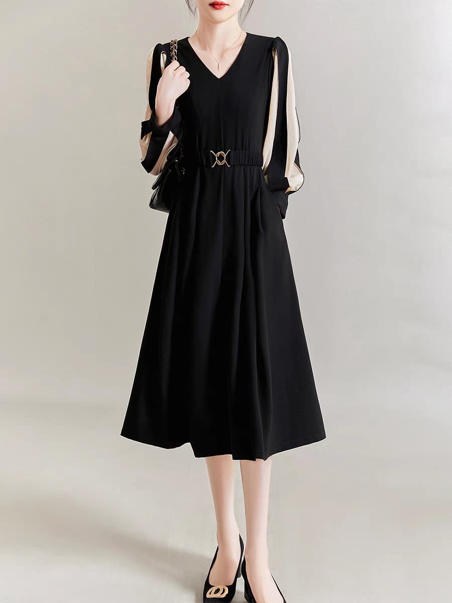 V Neck Dress Black 00090