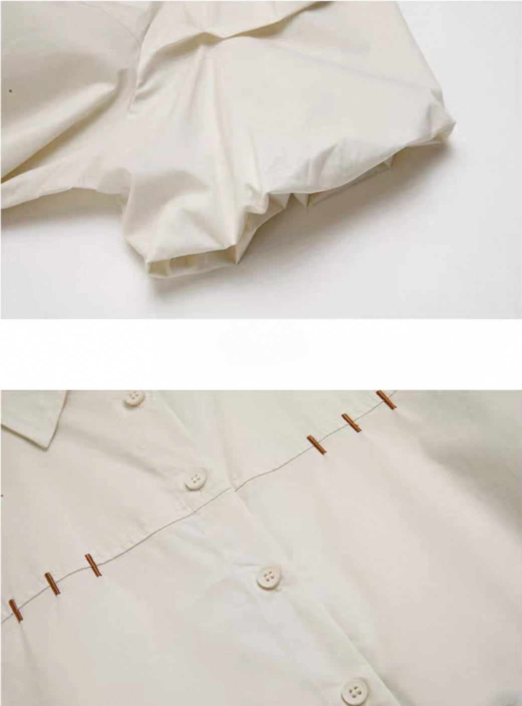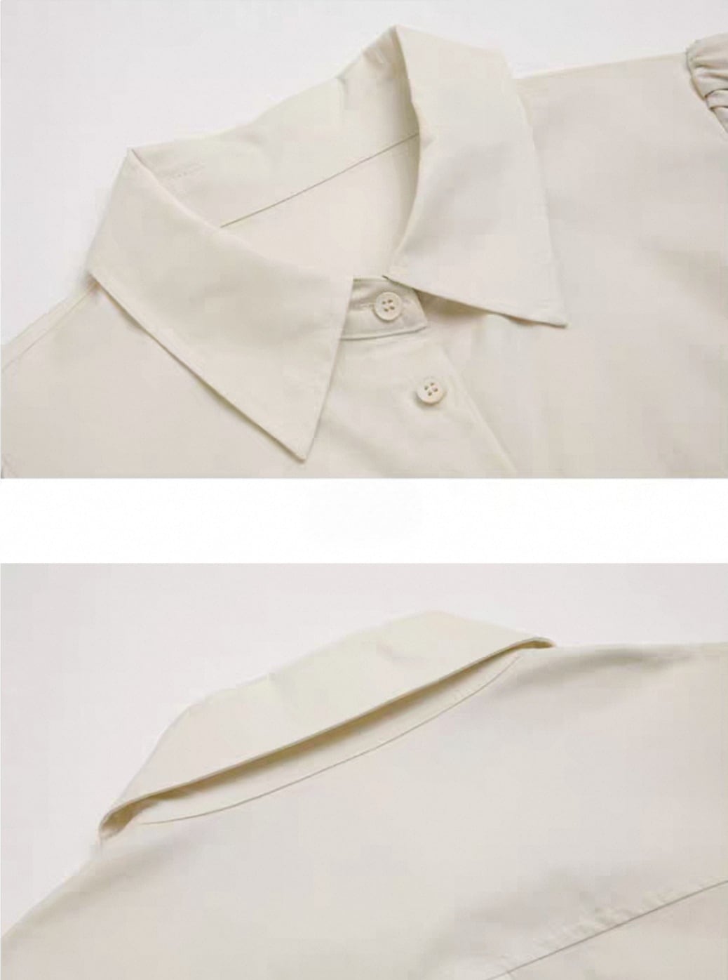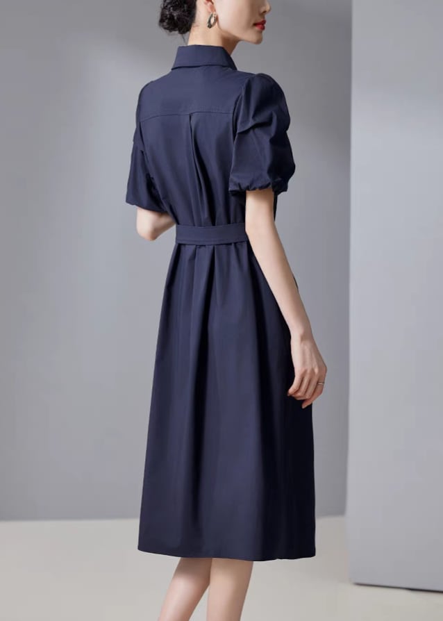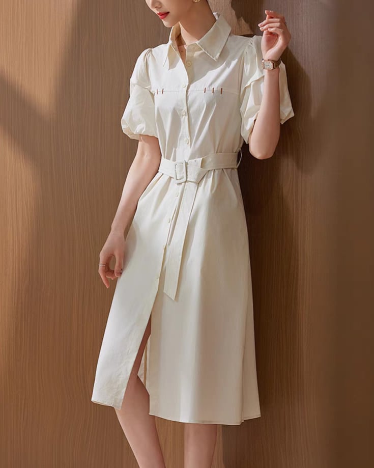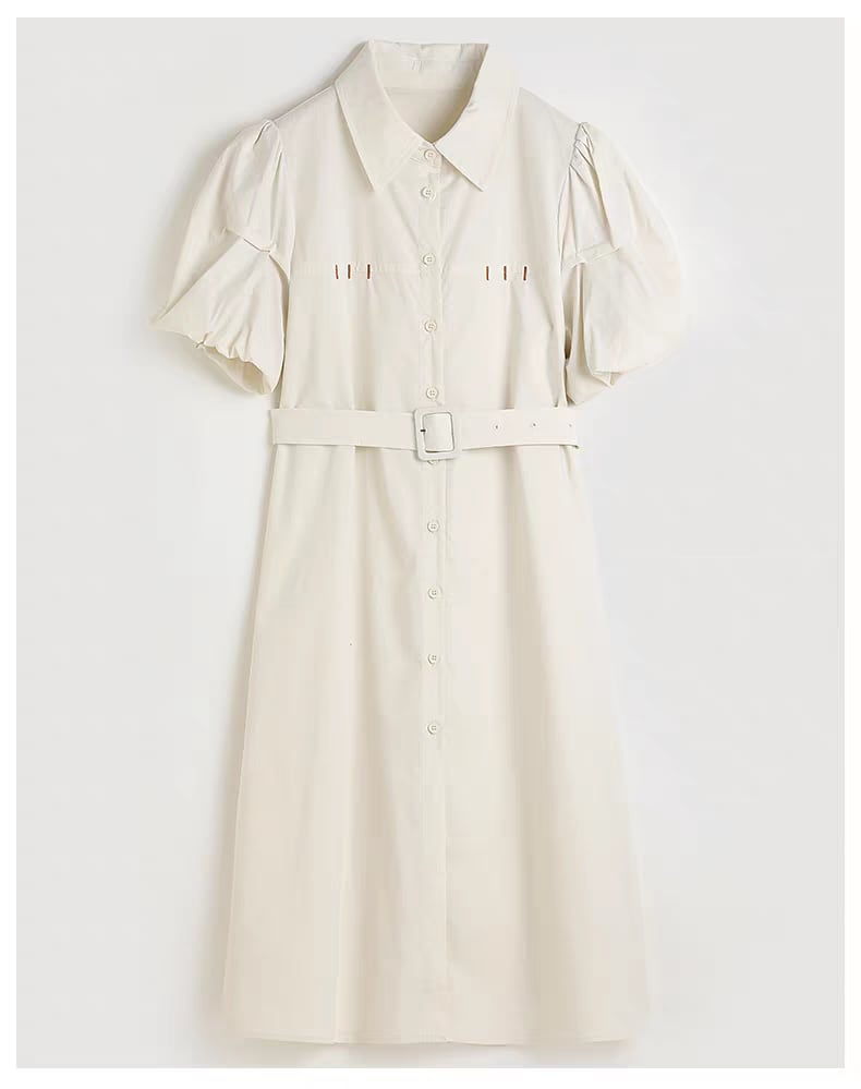 クラシックなシャツ襟デザインに、フェミニンなパフスリーブを組み合わせた上品な印象のワンピースです。