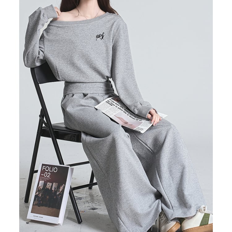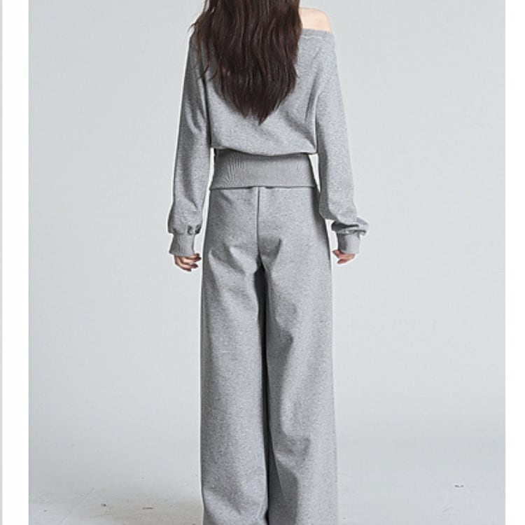 肩出し ルーズトップス&ワイドパンツセットアップ 00141