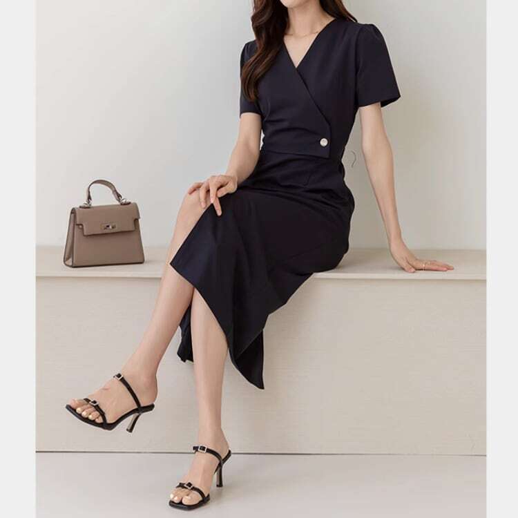 Vネック 高見え&細見え ワンピース 00184