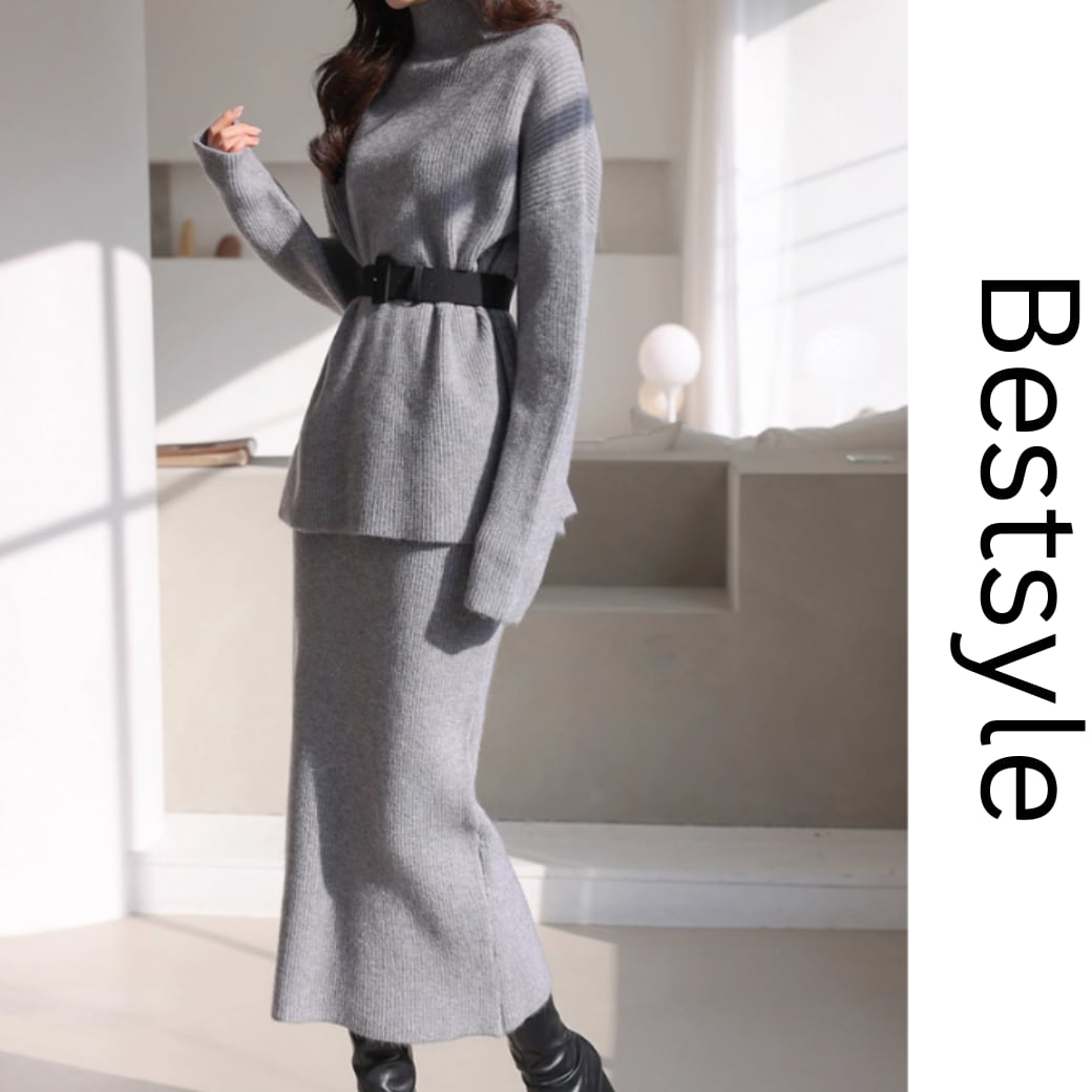 Mock Neck Knit Sweater & Skirt Set 2Piece 00367