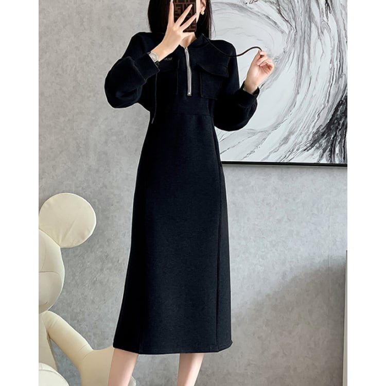 Hooded Sweat Dress Zip Pocket 2Colors 30044