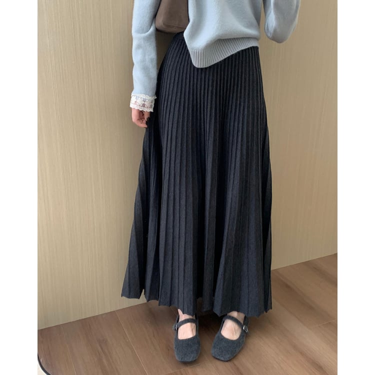 Wool Blend High Waist Pleats Skirt Knit Texture 4Colors 30062