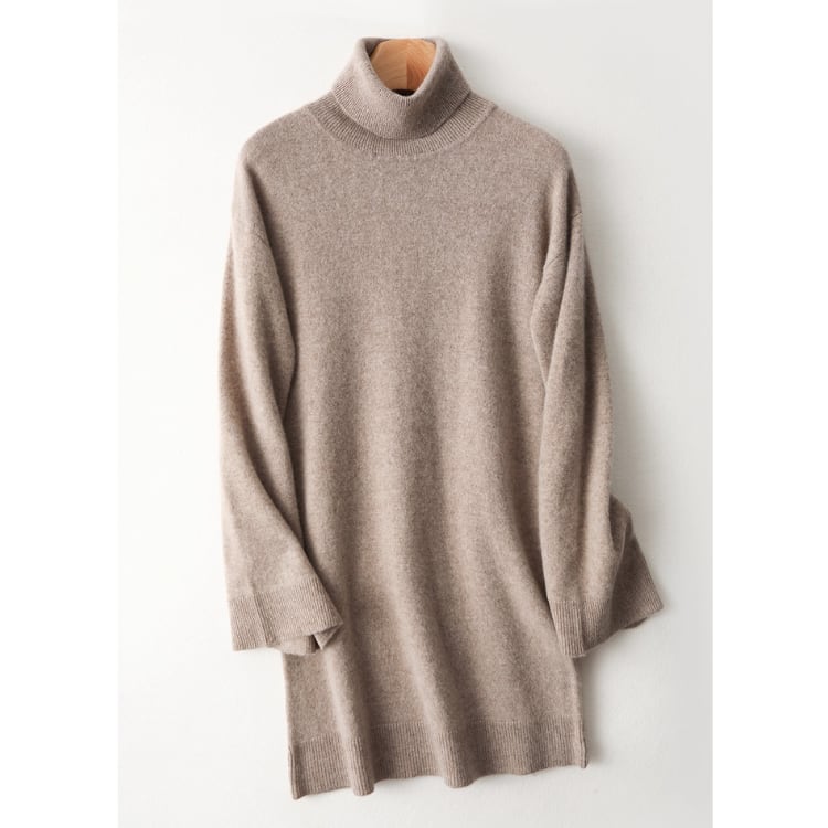 ウール100%の柔らかく暖かなニット素材を使用した、ゆとりのあるストレートシルエットのワンピース。高めのネックデザインが首元をやさしく包み、長袖&ややワイドな袖口が抜け感のあるバランスを演出します。