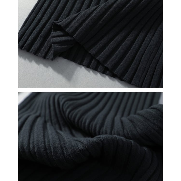 縦リブ編みで構成されたタイトラインのニットワンピース。