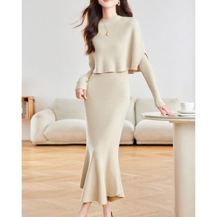 Cape Layer Knit Top Mermaid Skirt Set 4Colors 30097