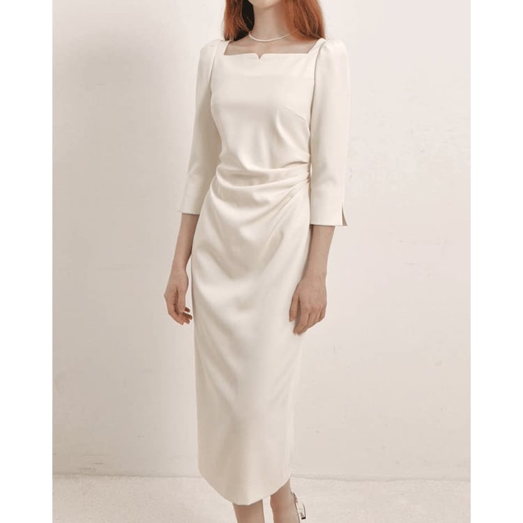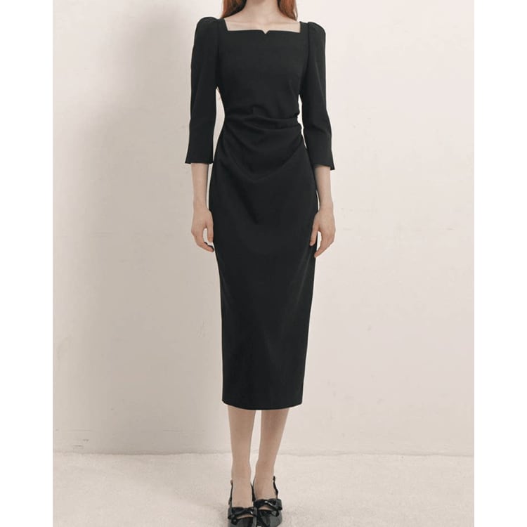 Square Neck Draped Waist Midi Dress 2Colors 30100
