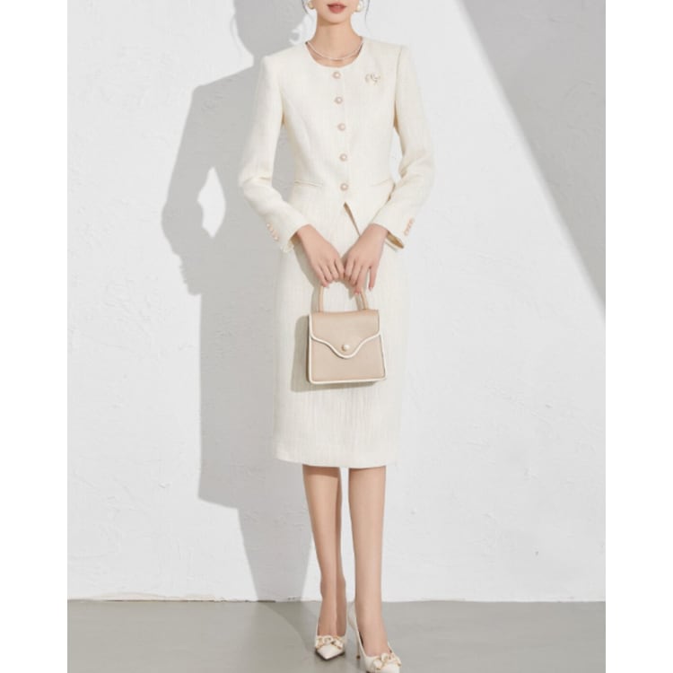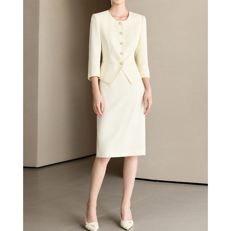 Ivory Collar Jacket Midi Skirt Suit Set 30101