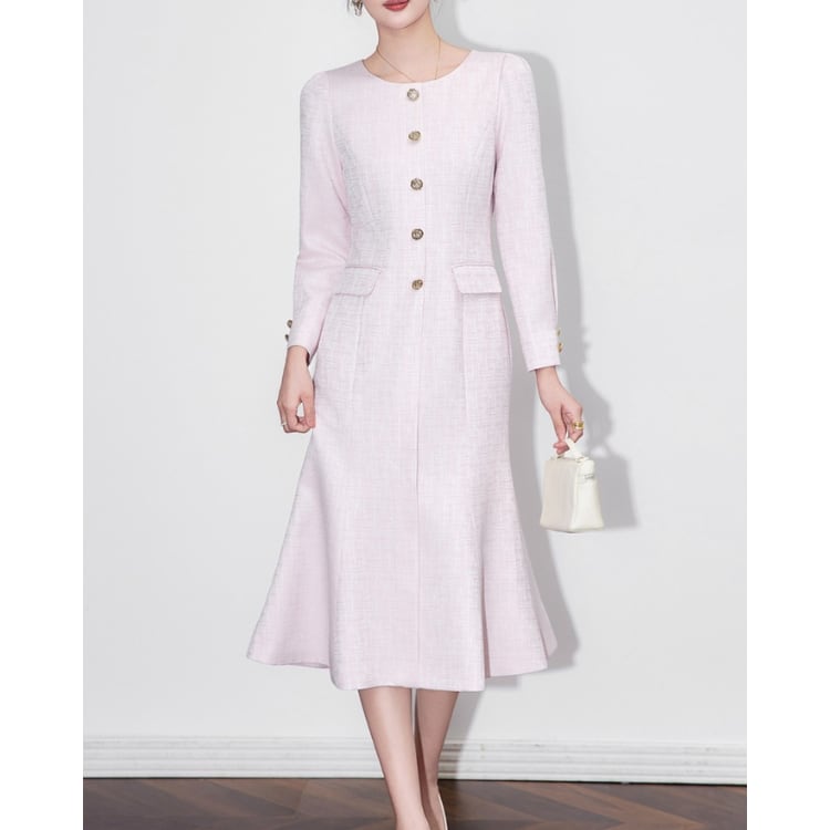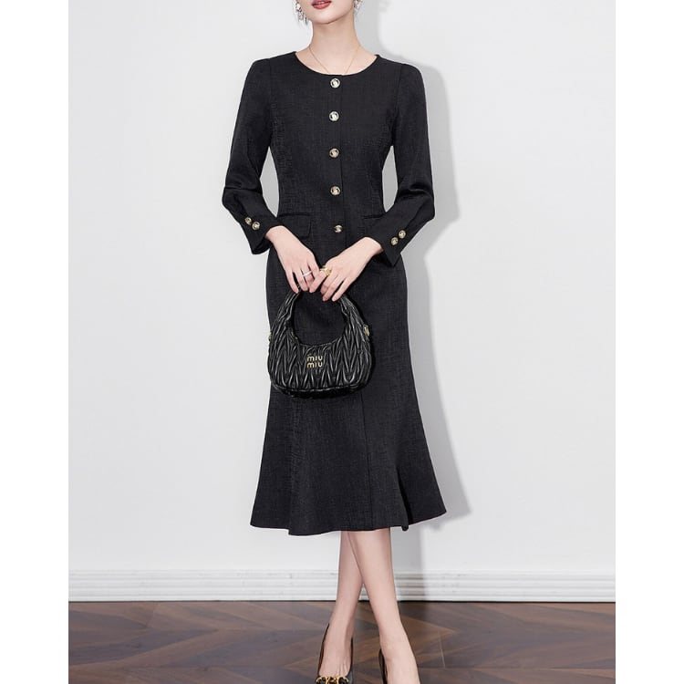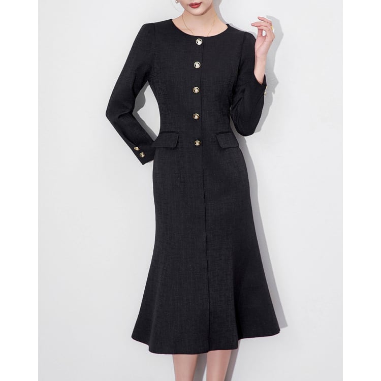 Mermaid Hem Button Front Long Dress 2Colors 30102