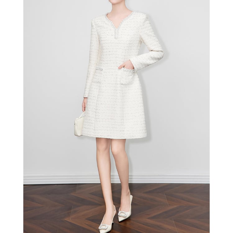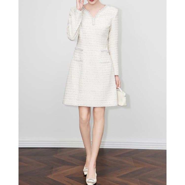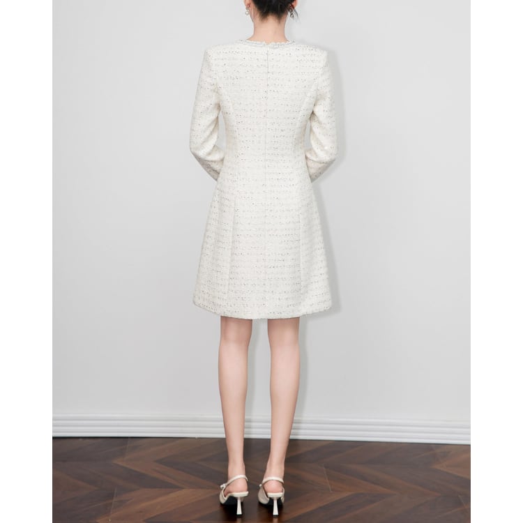 Pearl Tweed A Line Long Sleeve Dress 30104