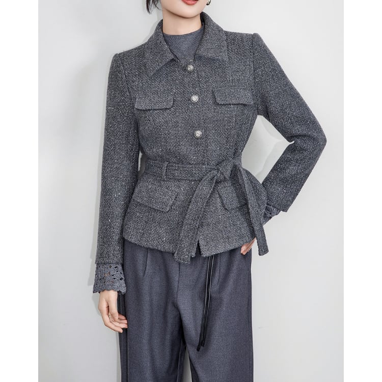 Tweed Short Jacket Waist Belt Women 30109