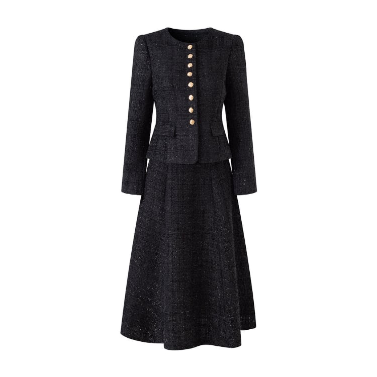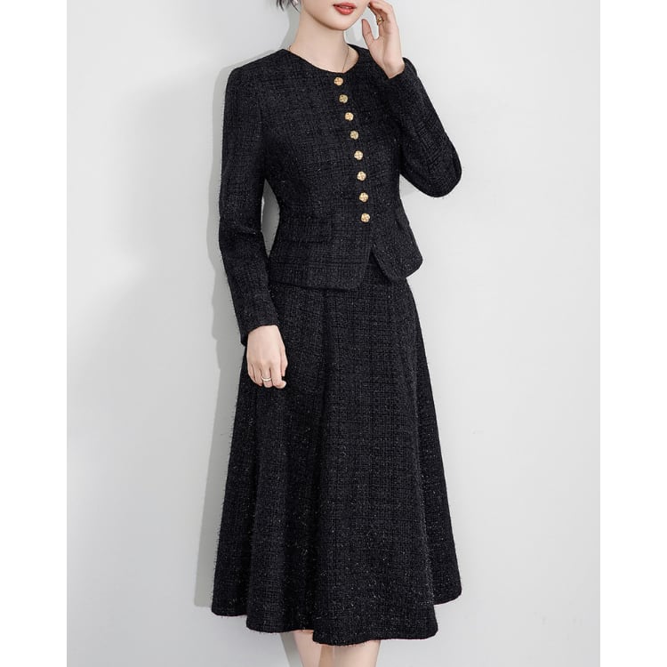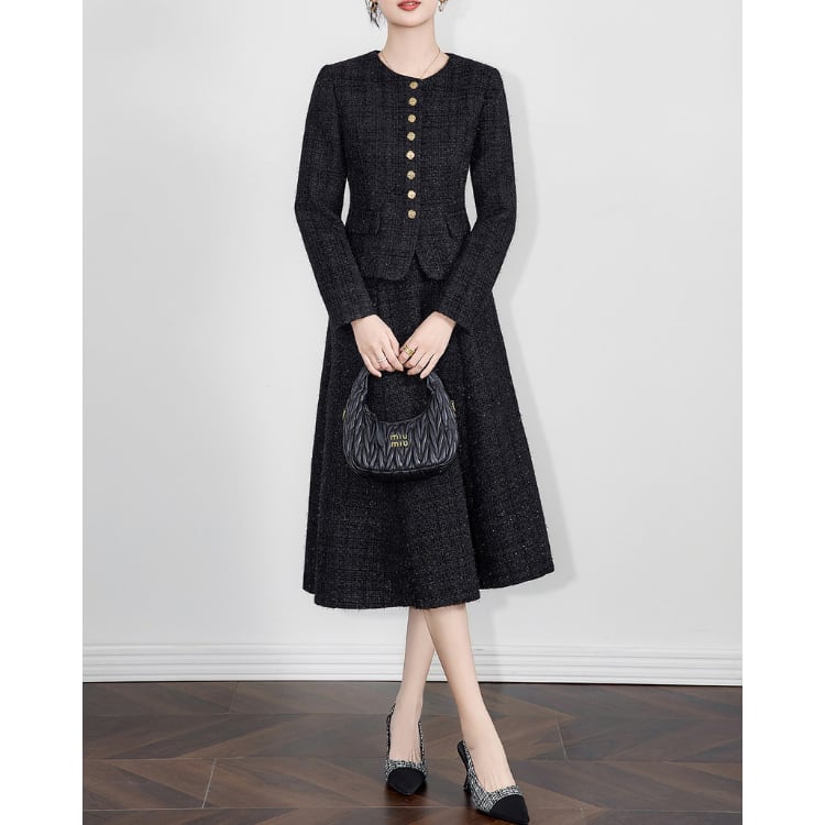 Tweed Jacket Flare Skirt Set Women 30110