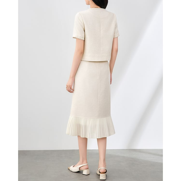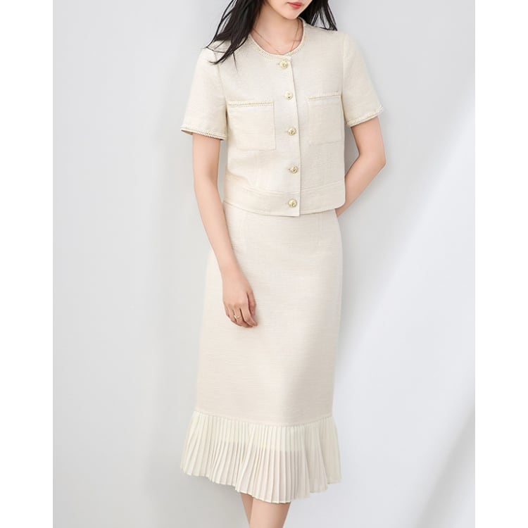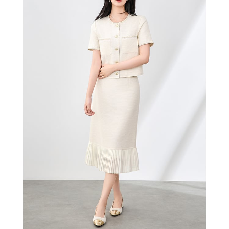 French Tweed Jacket Pleated Skirt Set Up 30114
