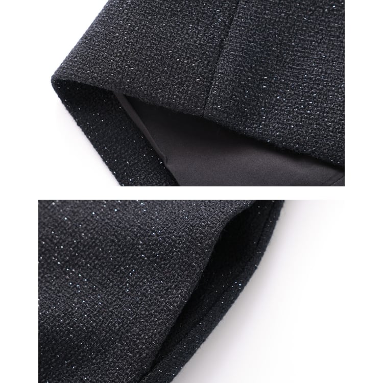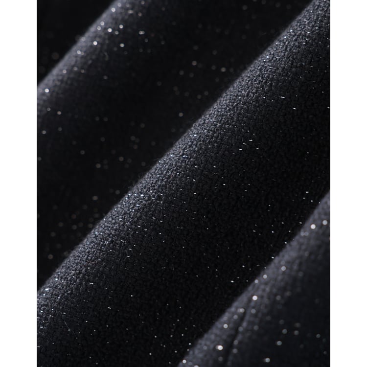 銀糸を織り込んだツイード素材を使用したノースリーブワンピース。織りによる細かな凹凸と控えめな光沢が生まれ、素材の表情を活かした仕上がりです。