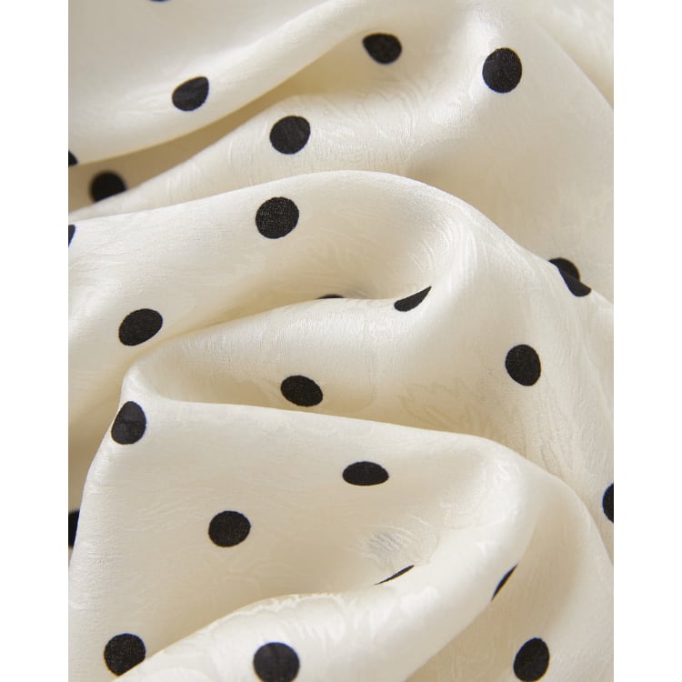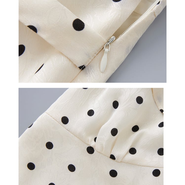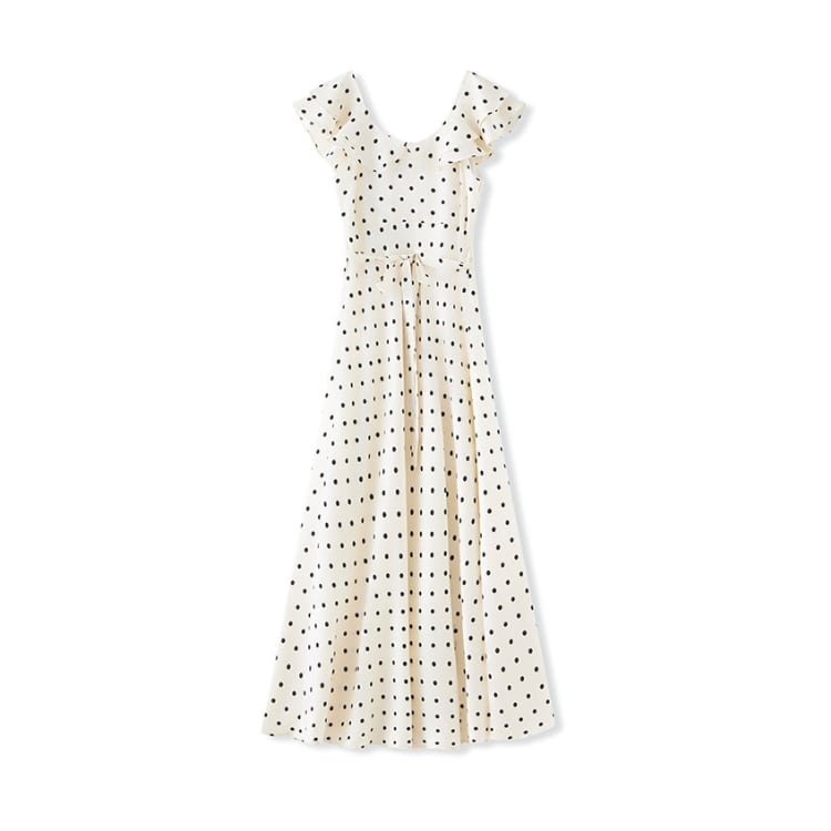 細かなドットプリントを施したロングワンピース。軽やかな生地感と流れるようなシルエットが特徴で、夏シーズンのスタイリングに取り入れやすい一枚です。