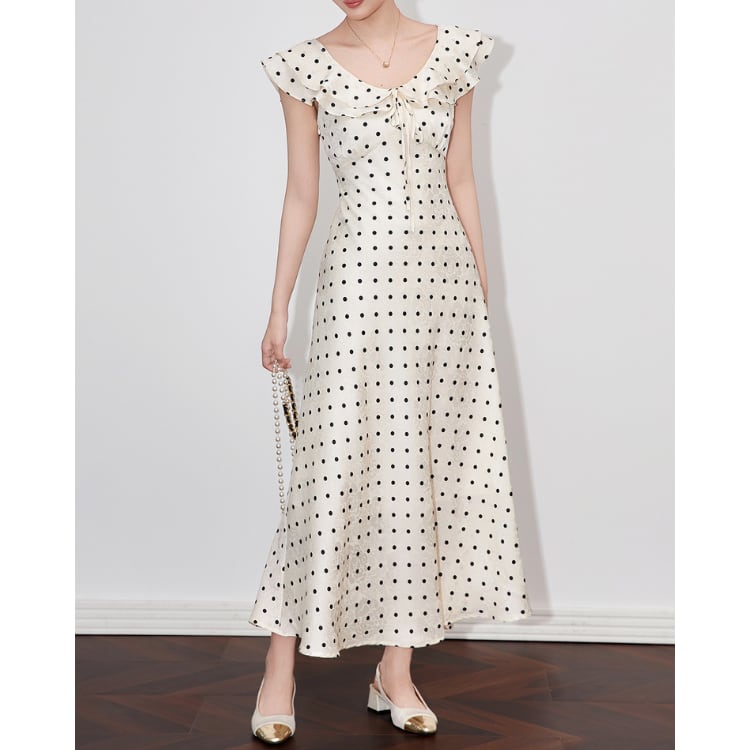 Polka Dot Ruffle Collar Sleeveless Maxi Dress Summer Style 30125