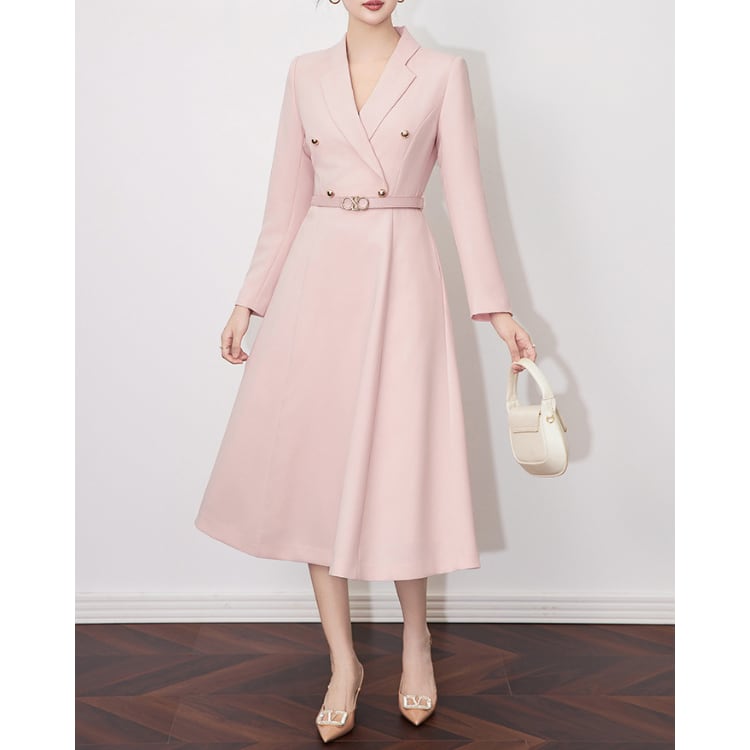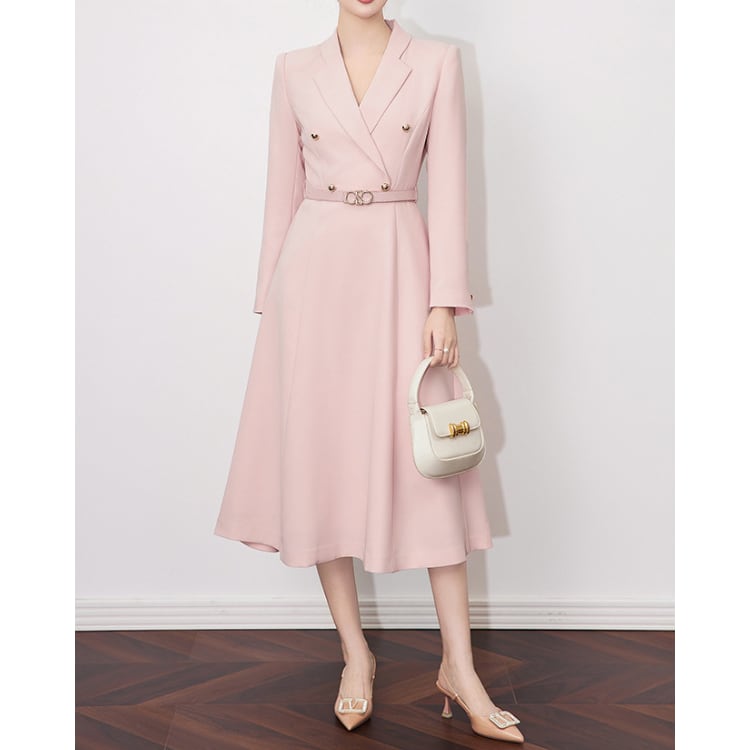 Double Breasted Blazer Style A Line Midi Dress Belted 2Colors 30128