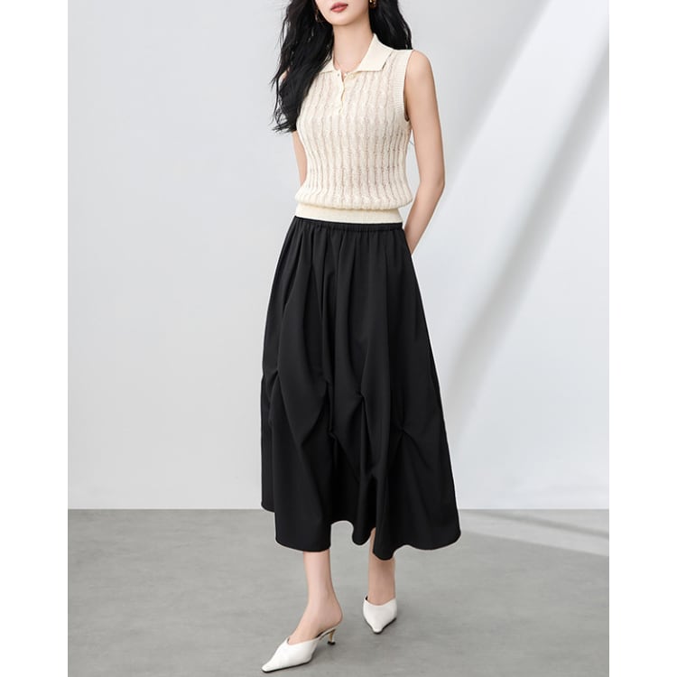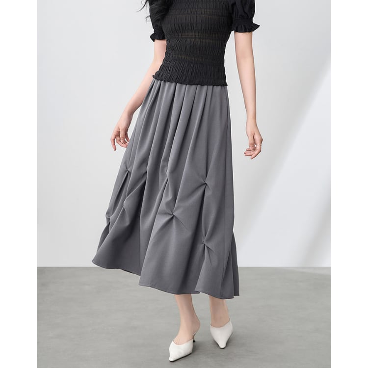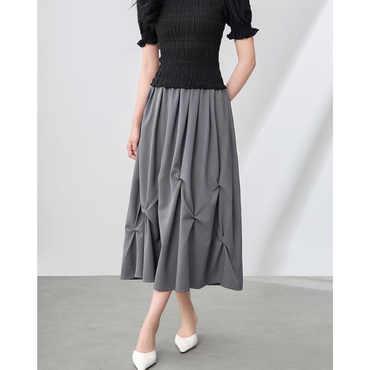 Irregular Pleated A Line Midi Skirt Women 2Colors 30132