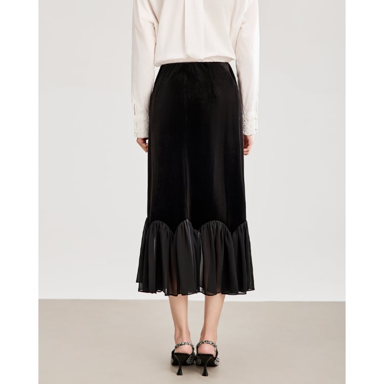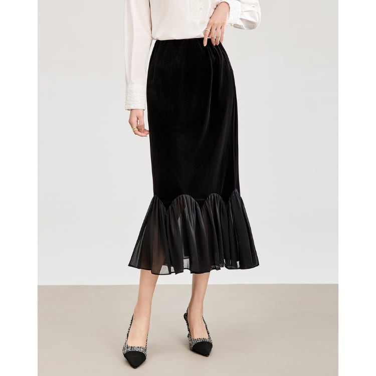 Velvet Chiffon Mermaid Midi Skirt 30134
