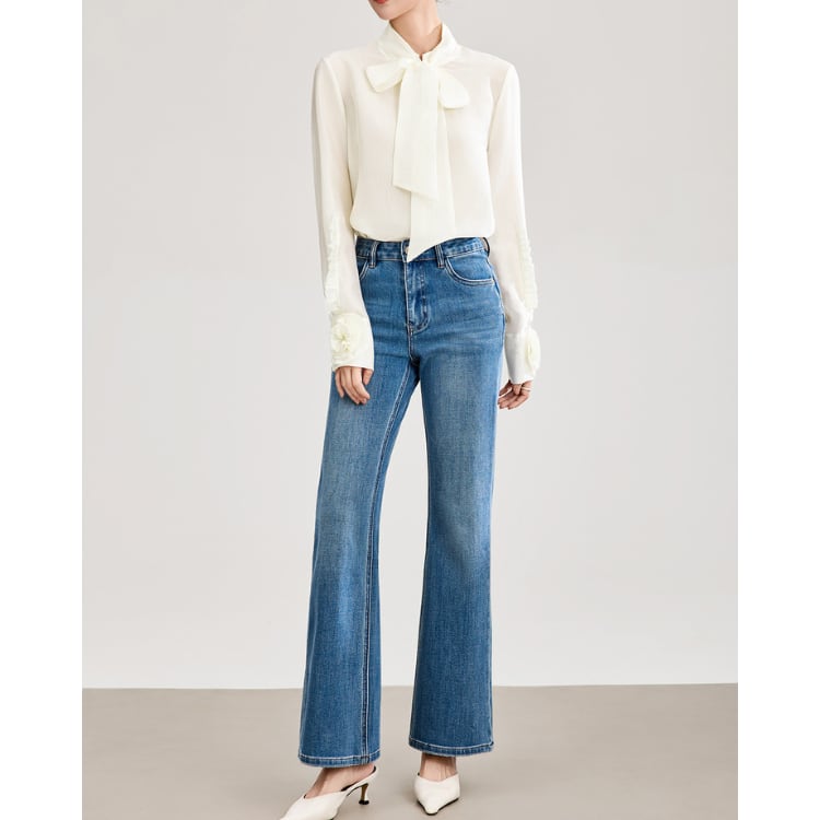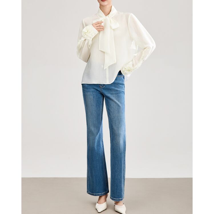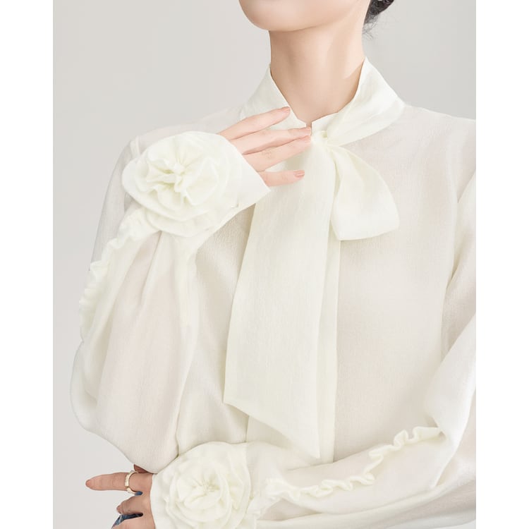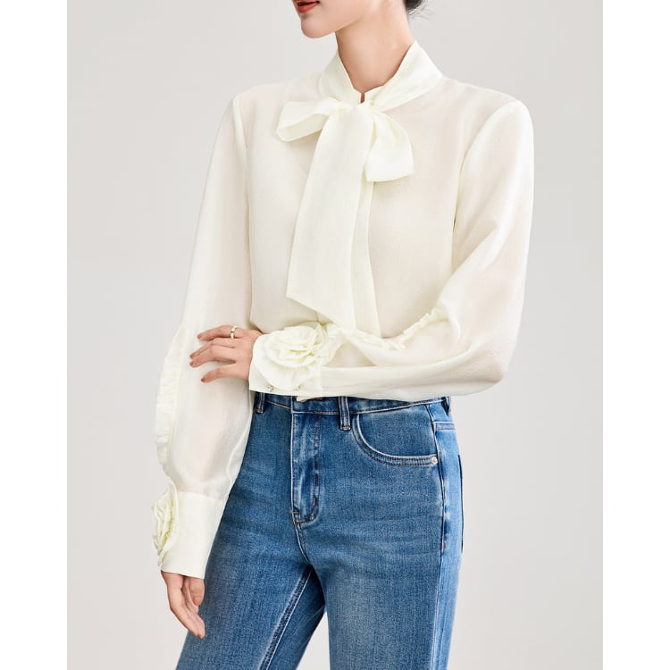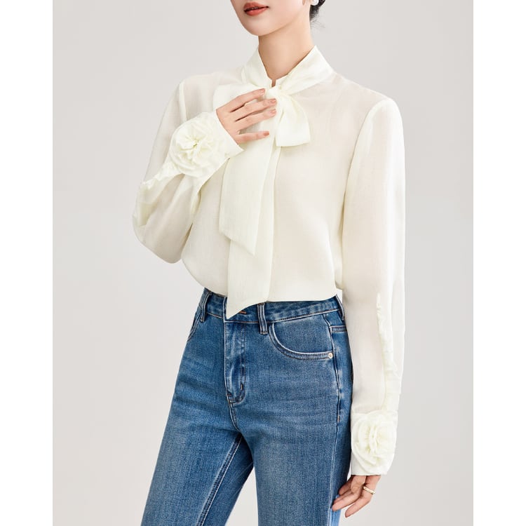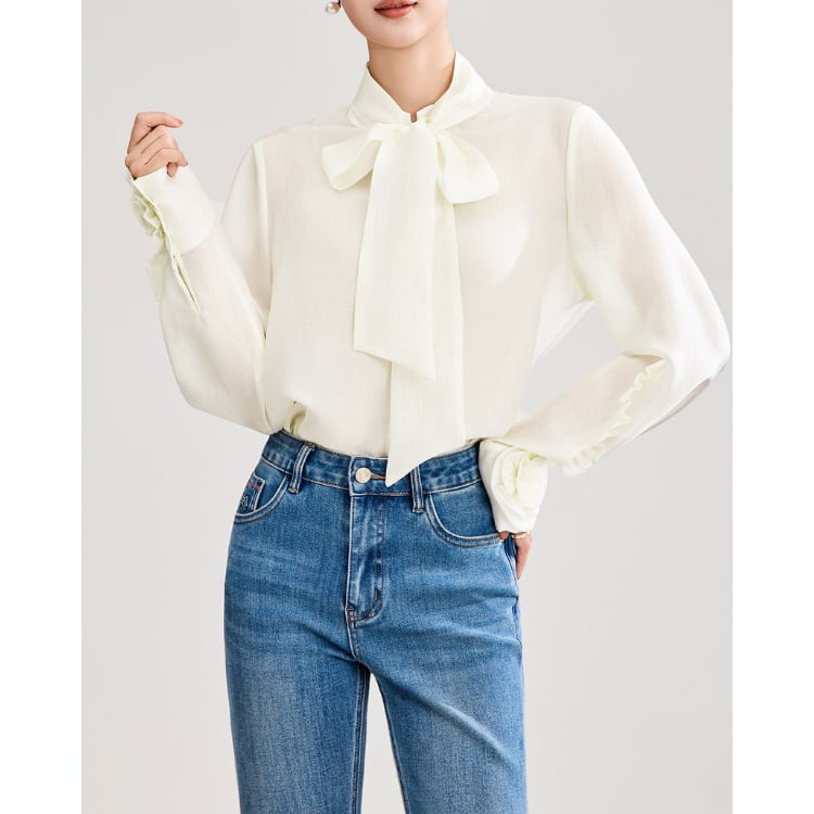 Bow Tie Tencel Blend Blouse Long Sleeve 30136