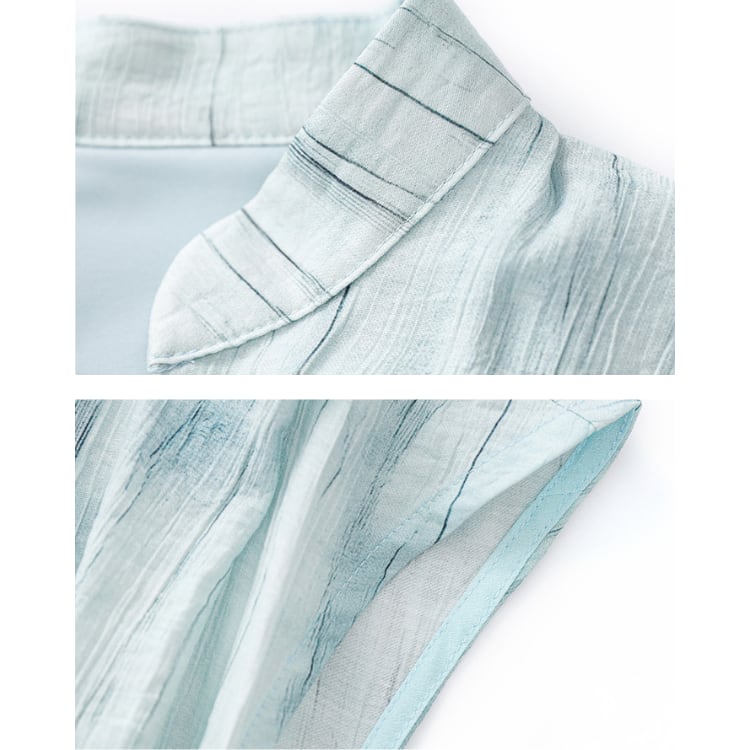 繊細なムラ感のあるインク調テクスチャーが特徴のワンピース。コットン主体にシルクをブレンドした生地は、軽やかさと自然なドレープ性を兼ね備え、盛夏でも快適な着用感を実現します。