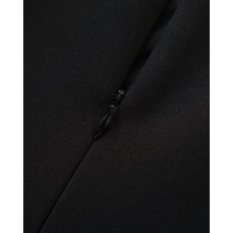 構築的なパネル切替によって立体的なラインを形成したノースリーブドレス。ボディに沿うシルエットながら、過度なタイト感を抑えた設計で、日常からフォーマル寄りのシーンまで対応可能です。