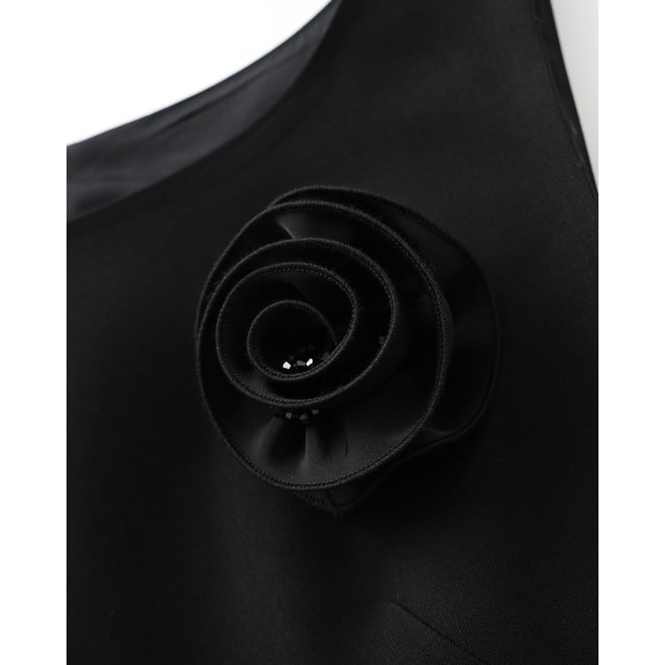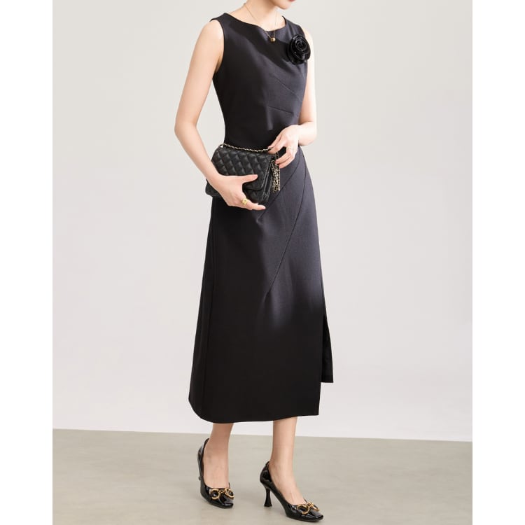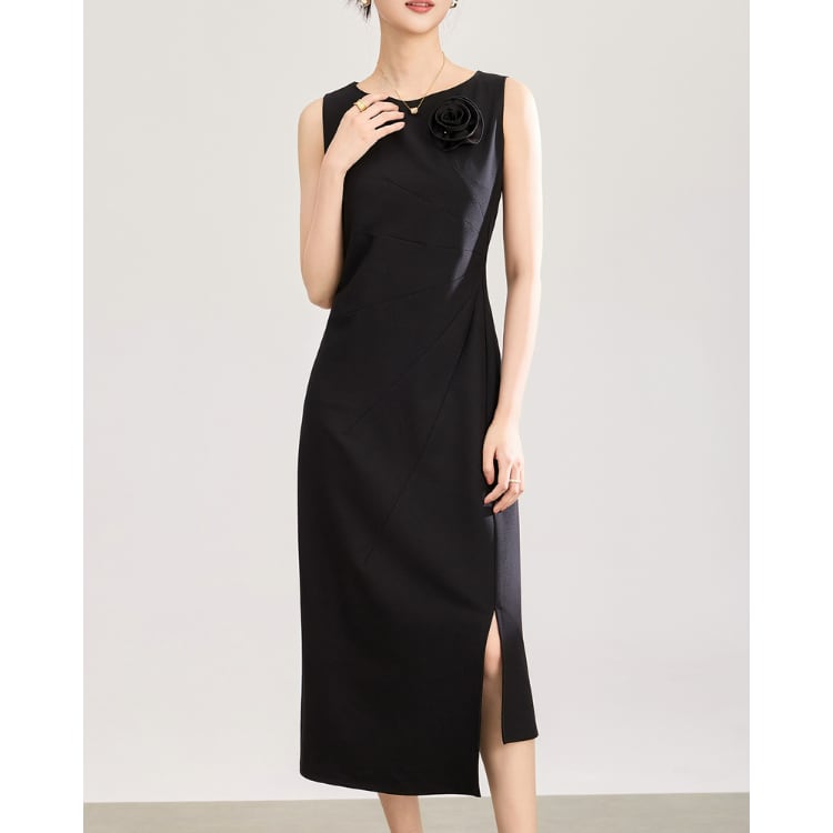 Modern Sleeveless Floral Accent Midi Dress Black 2603006