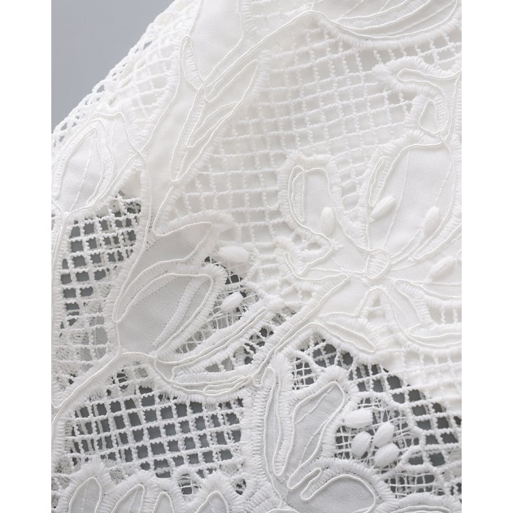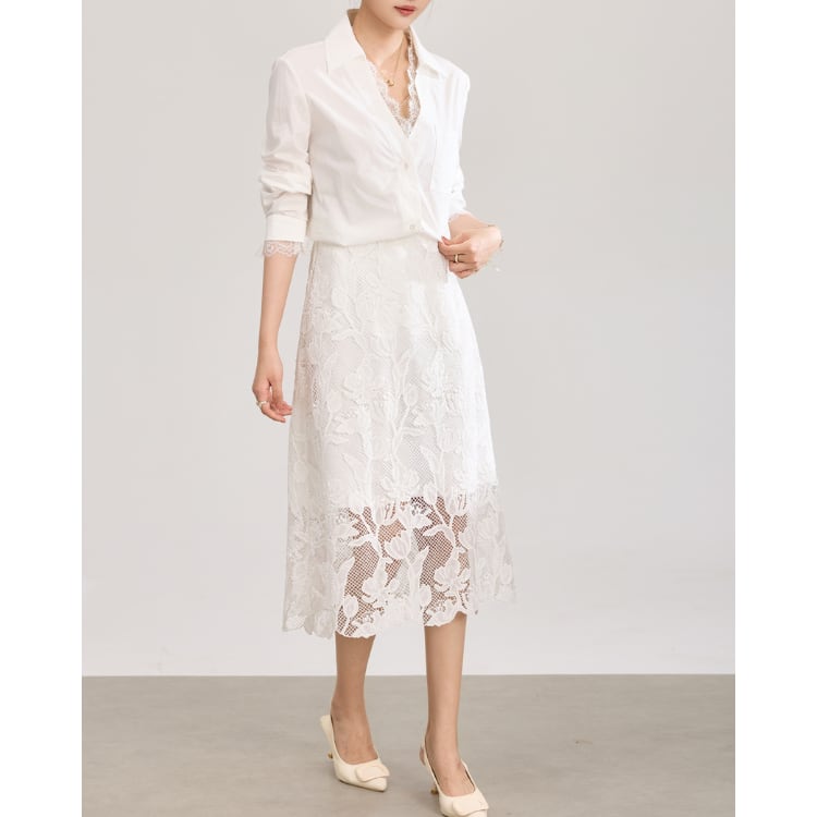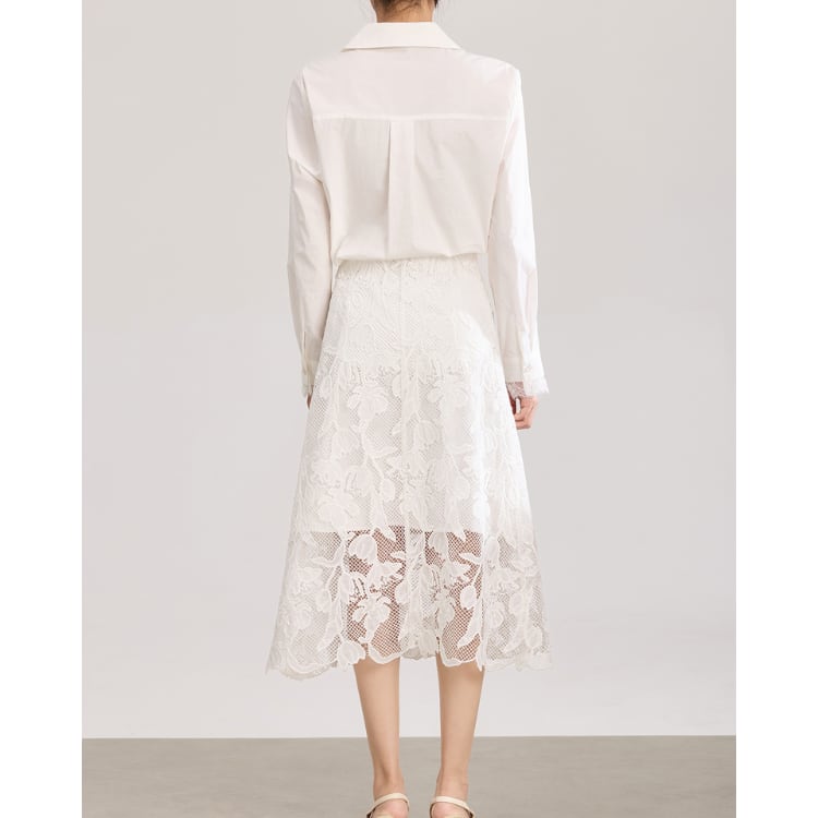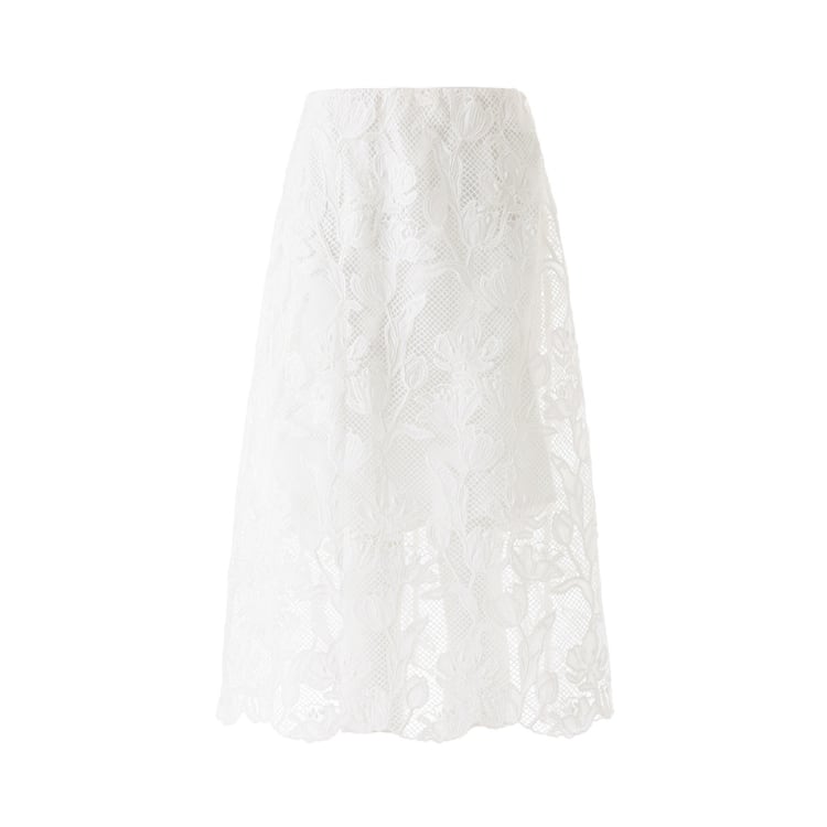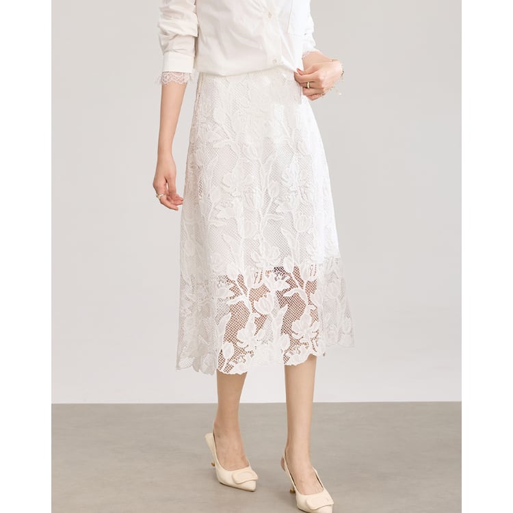 Lace A Line Midi Skirt Floral Embroidery White 2603007