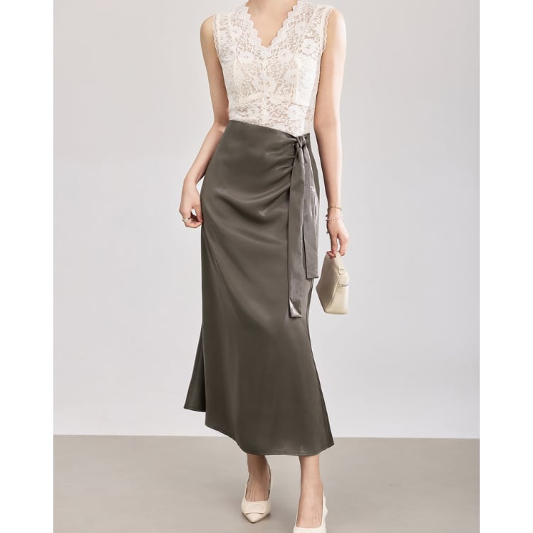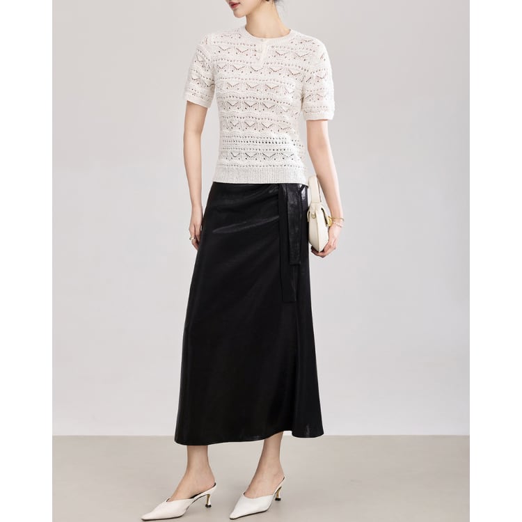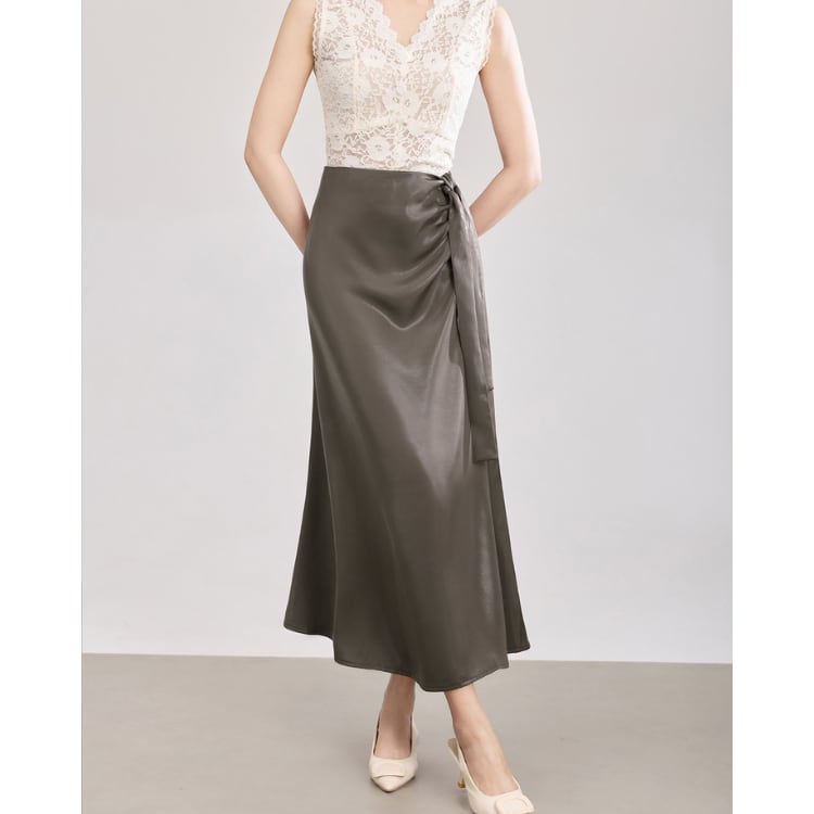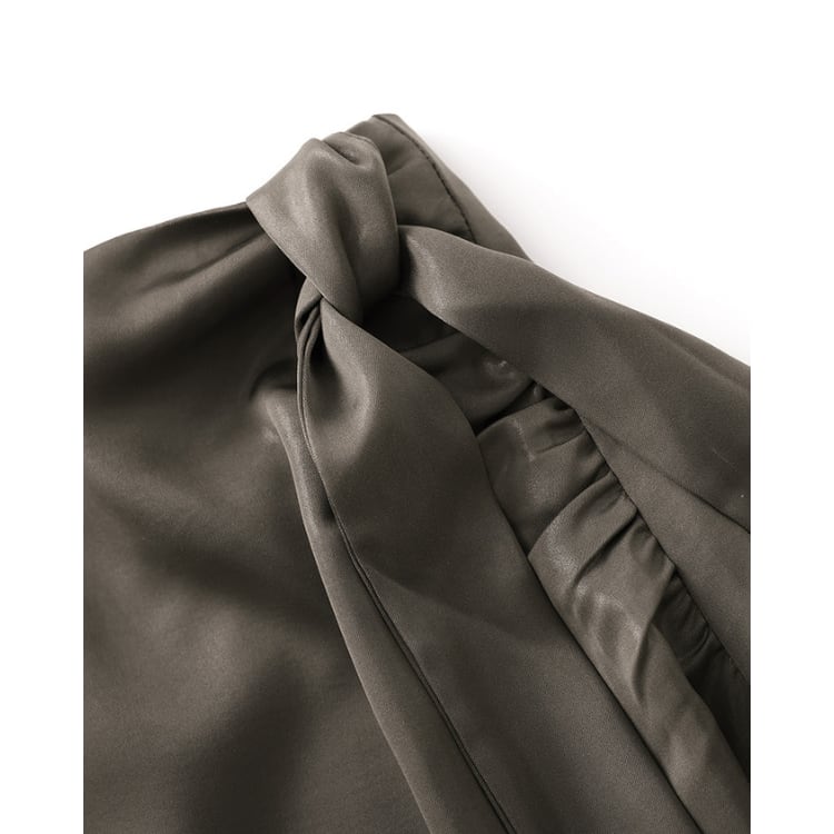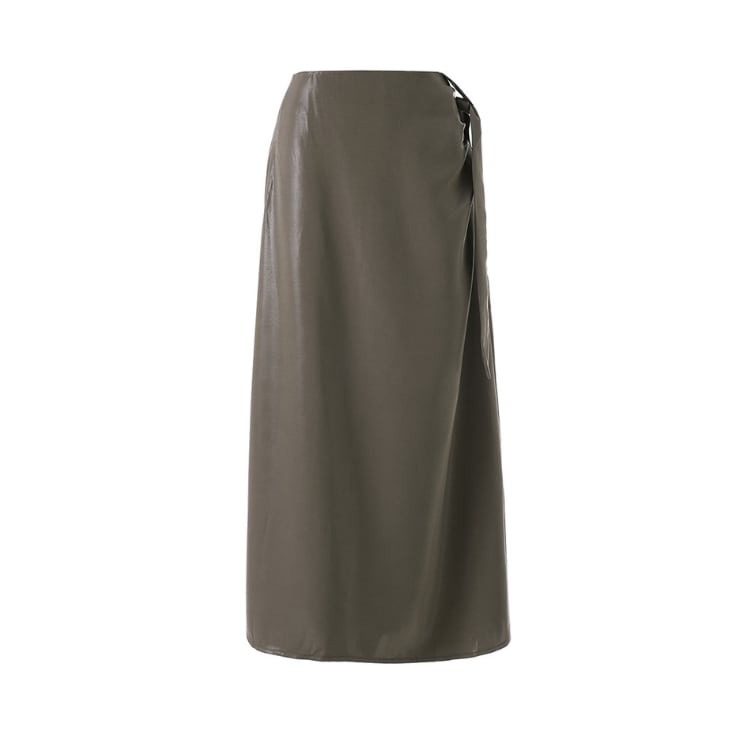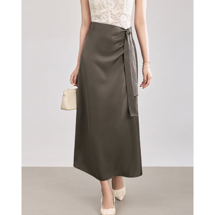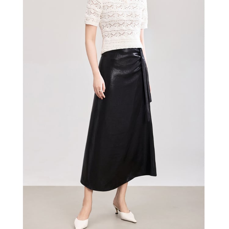 Glossy Wrap A Line Midi Skirt Tie Detail 2Colors 2603008