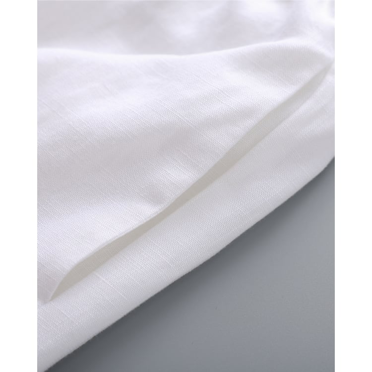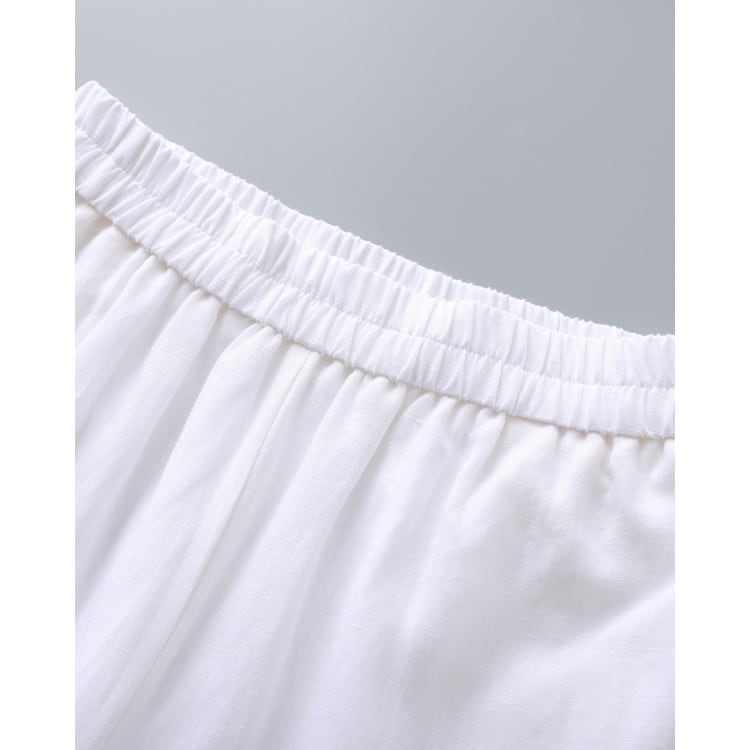 テンセルとリネンをブレンドした素材を使用したセットアップ。通気性と落ち感を兼ね備え、軽やかな着用感と自然なドレープを両立しています。
