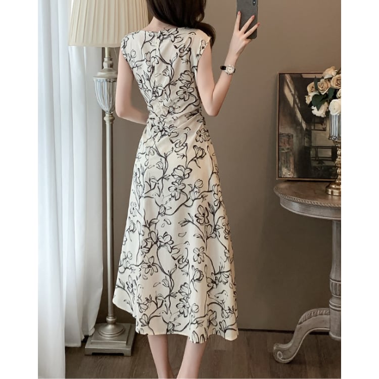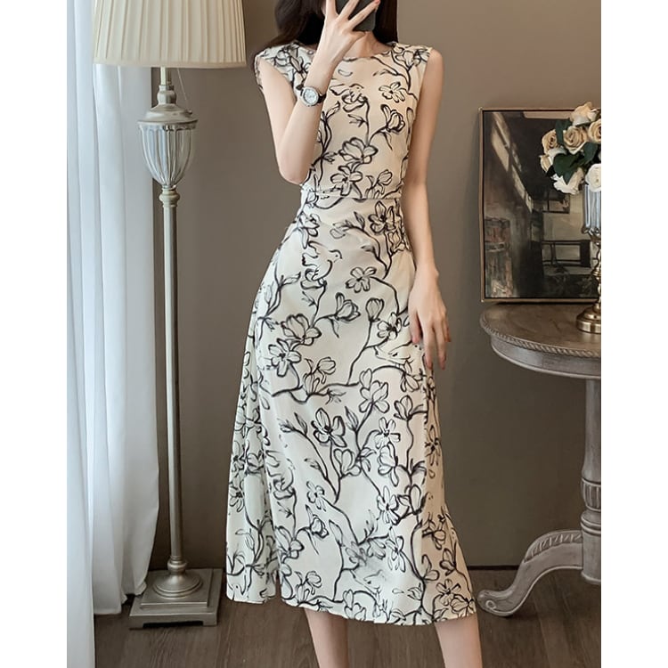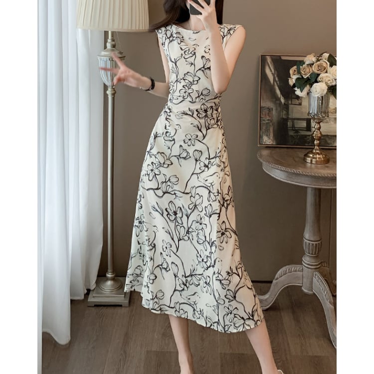 Floral Sleeveless A Line Midi Dress 2603032