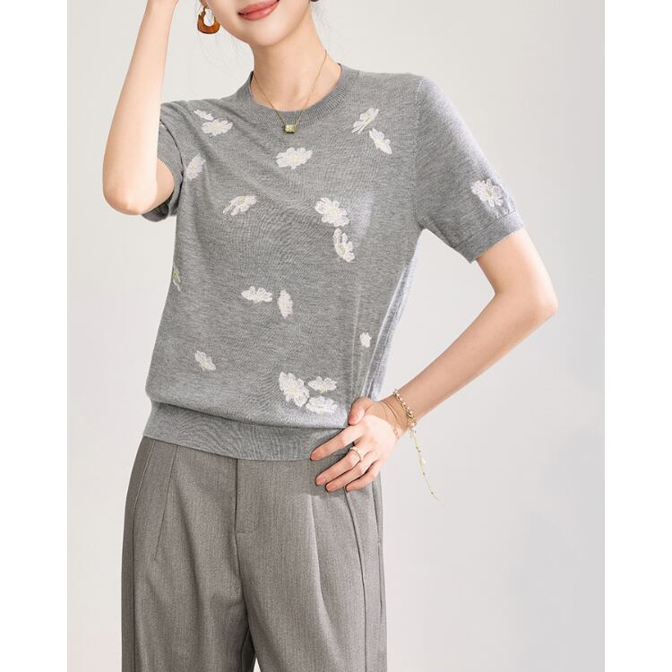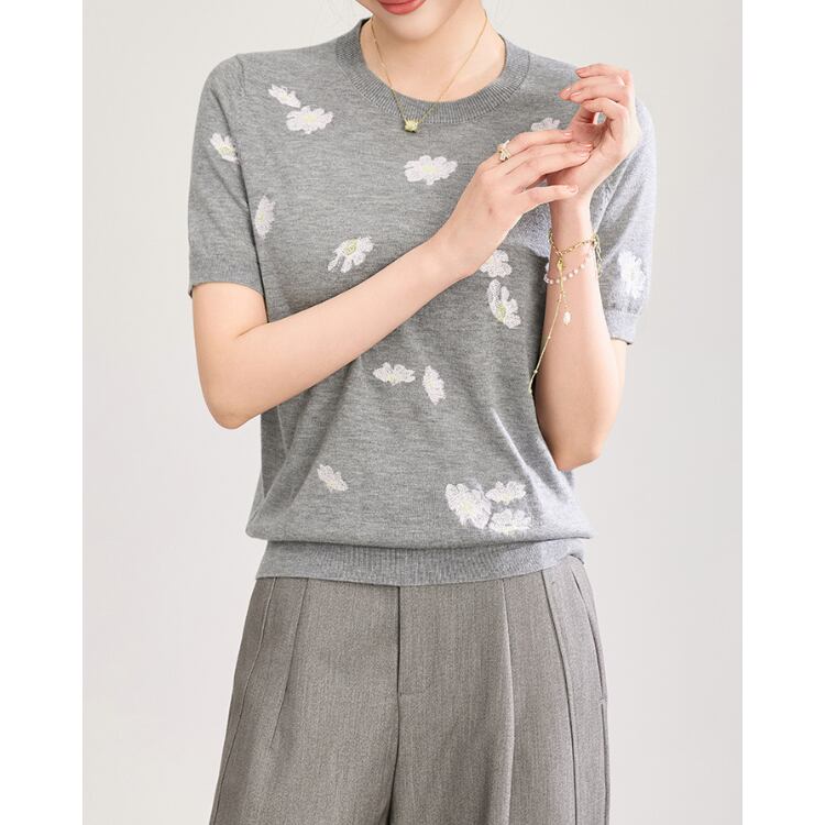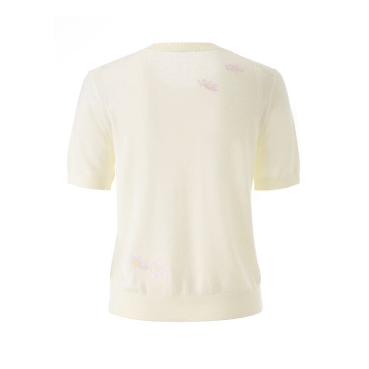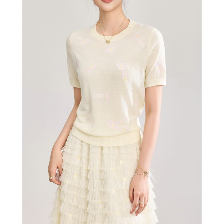 Floral Embroidery Short Sleeve Knit Top 2Colors 2604002
