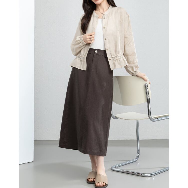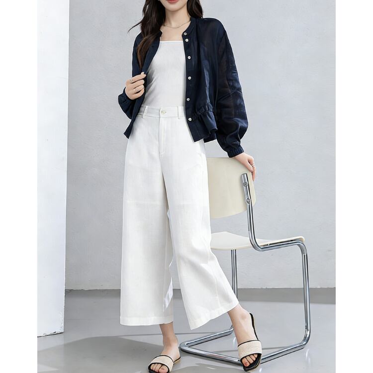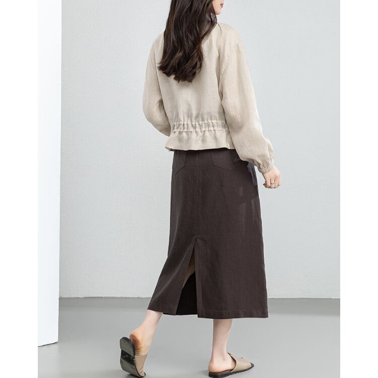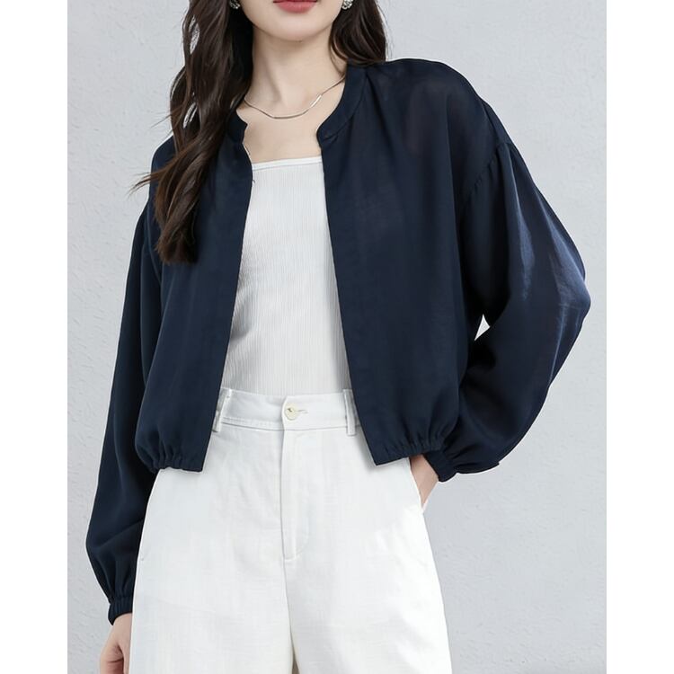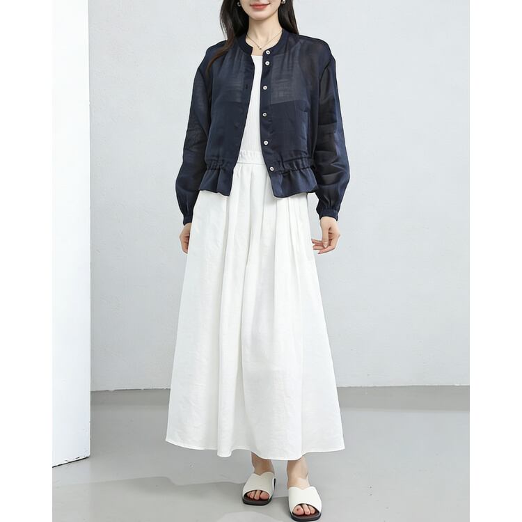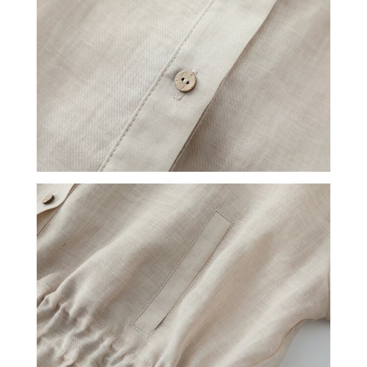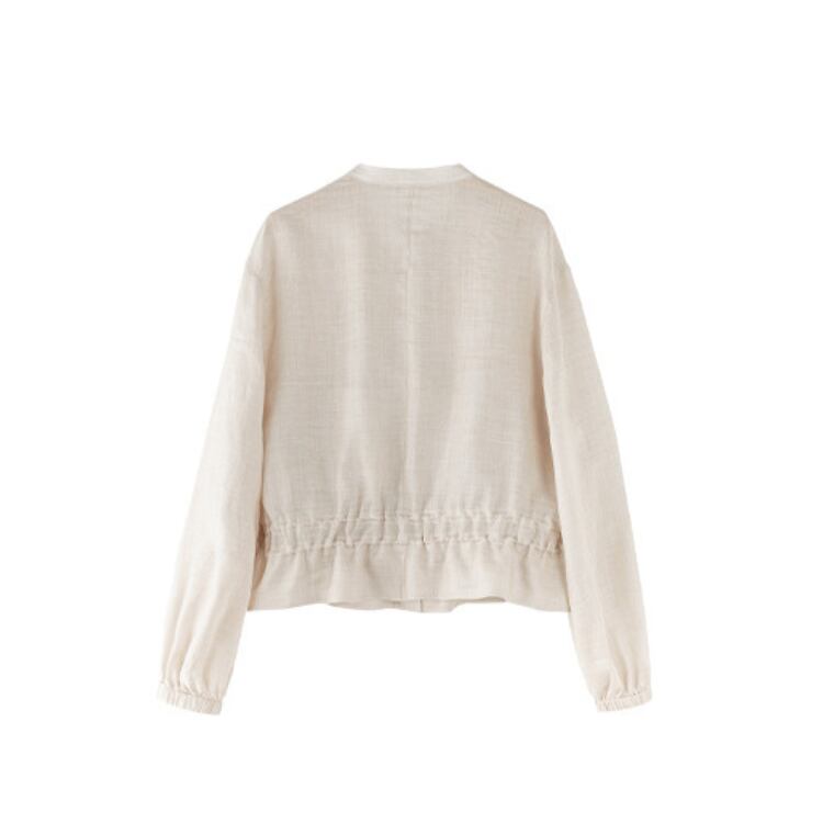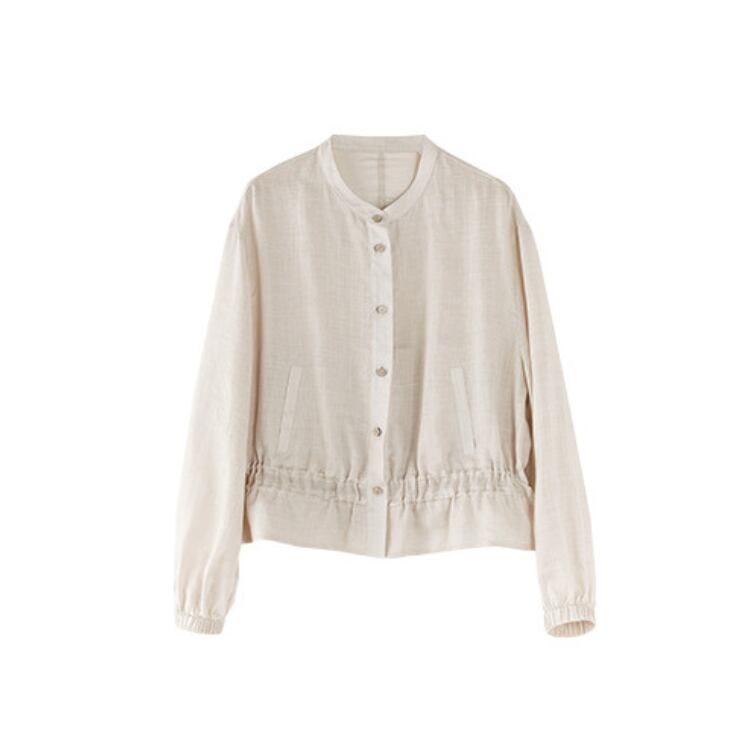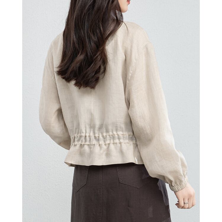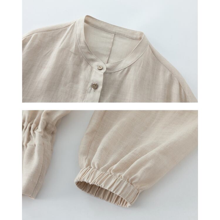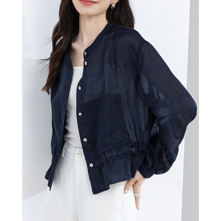 Linen Stand Collar Sheer Shirt Lightweight Summer Blouse 2Colors 2604030