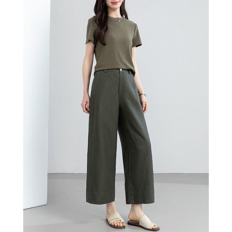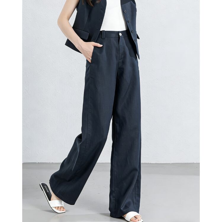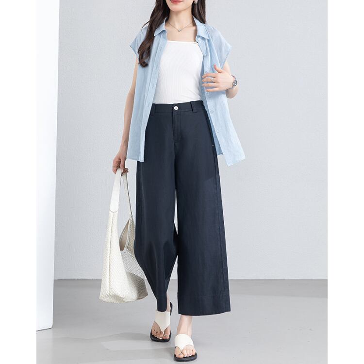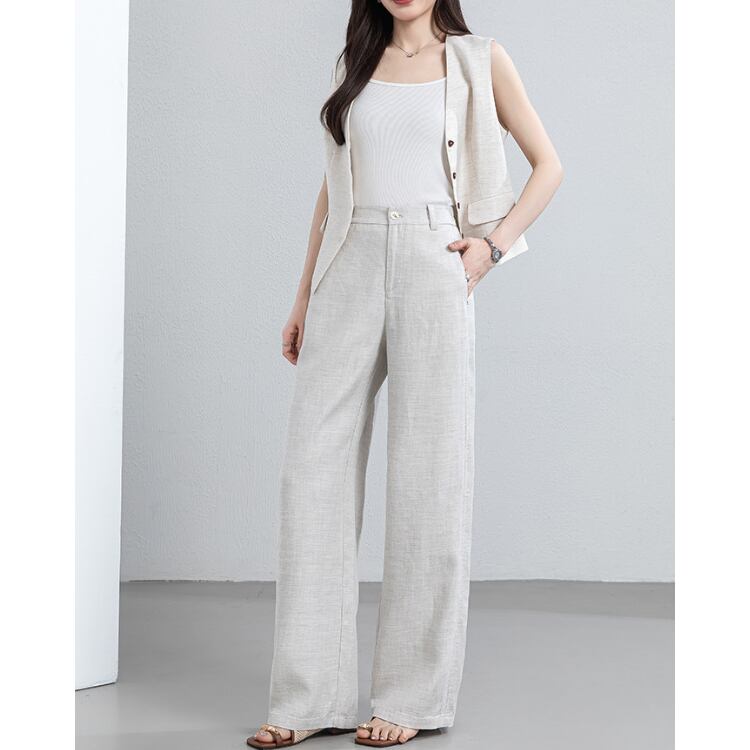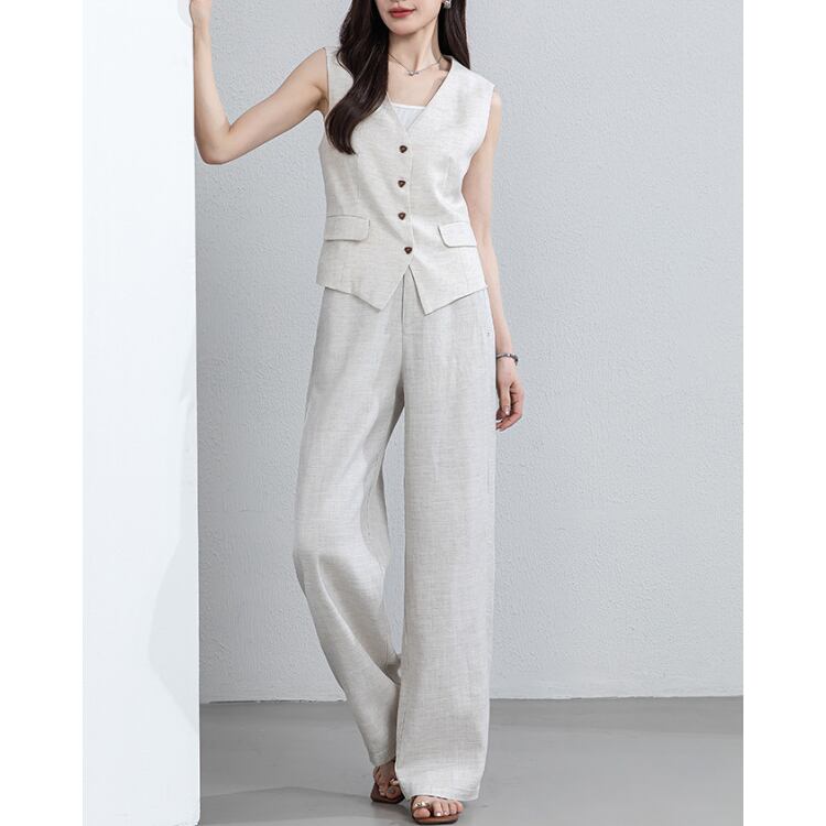 Linen Blend Vest Wide Leg Pants Set Relax Fit Summer 3Colors 2604031