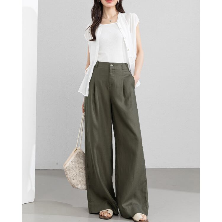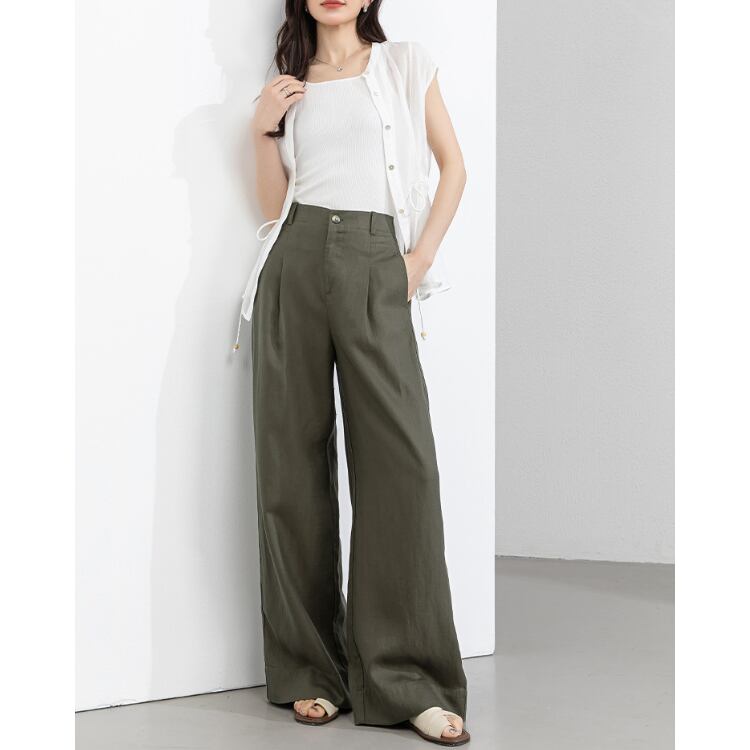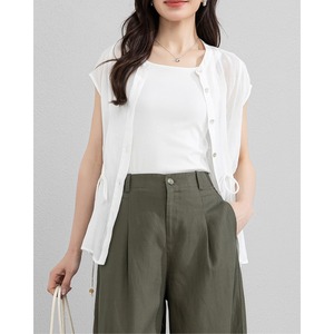 リネン100%素材を使用した、軽量かつ通気性に優れたノースリーブブラウス。繊維特有のドライなタッチと自然なシワ感が、スタイリングに奥行きを与えます。