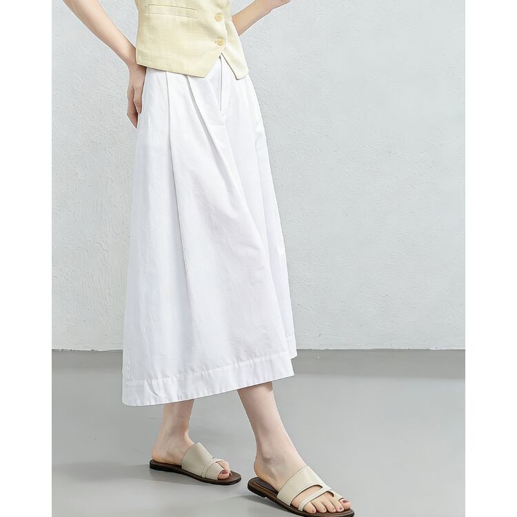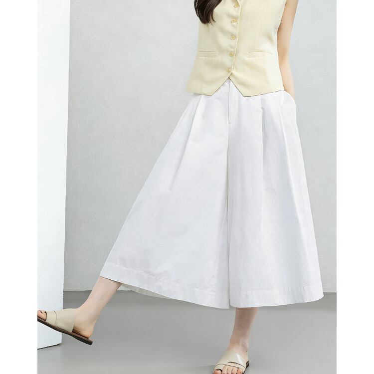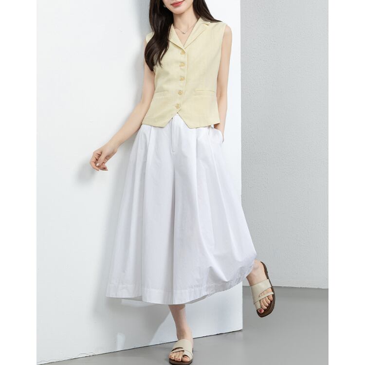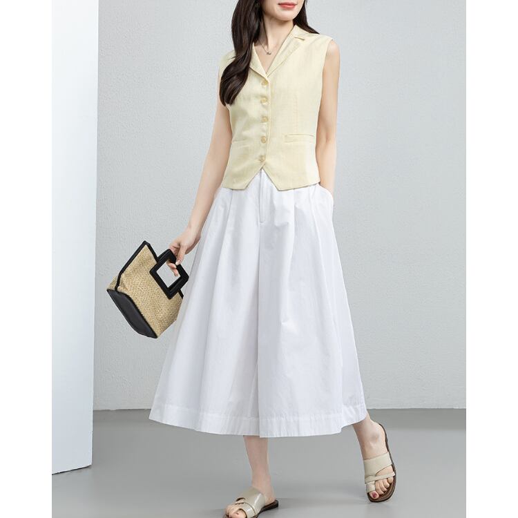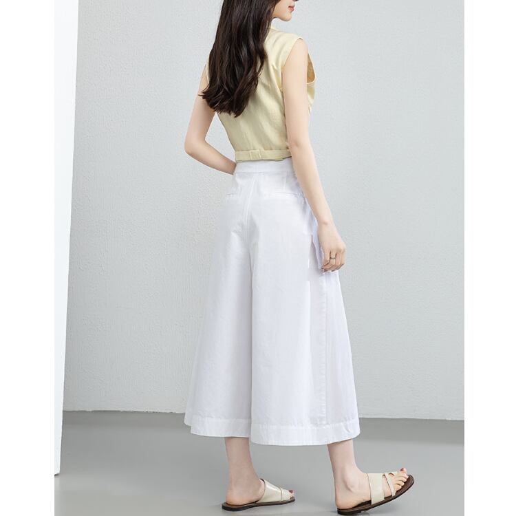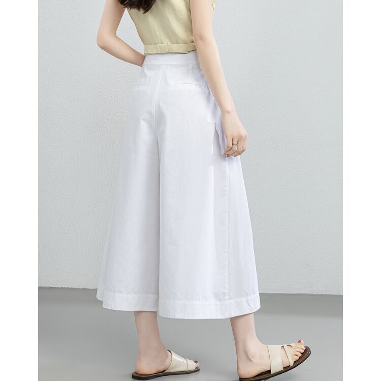 Cotton Linen Wide Cropped Pants High Waist Relax Fit Summer 2604042