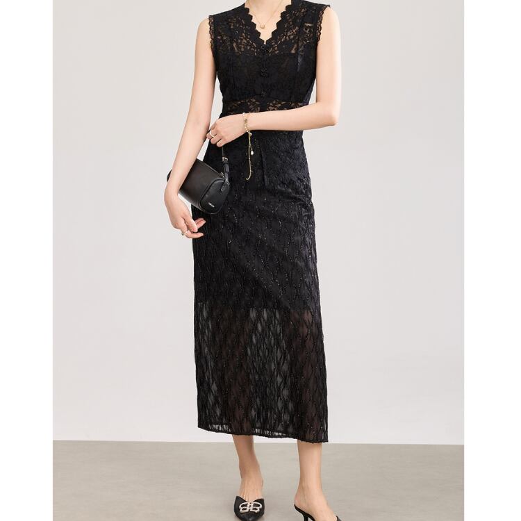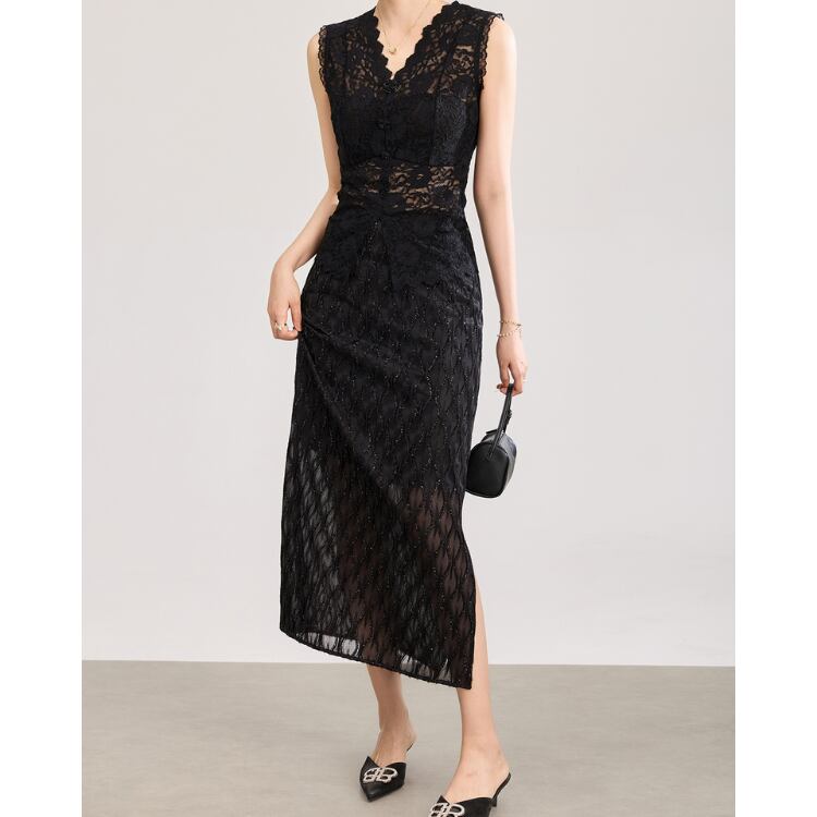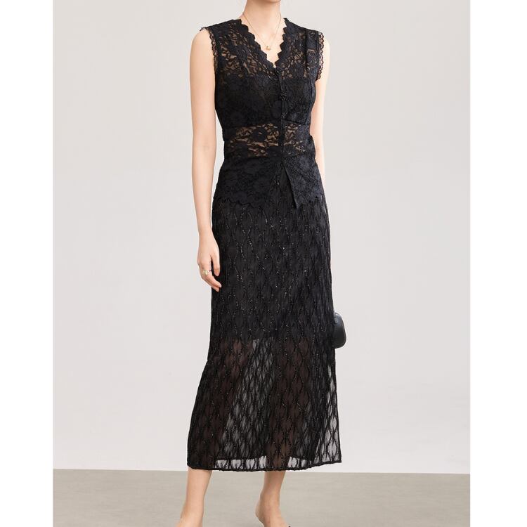 Sheer Lace Tight Midi Skirt Elegant Style 3Colors 2604008