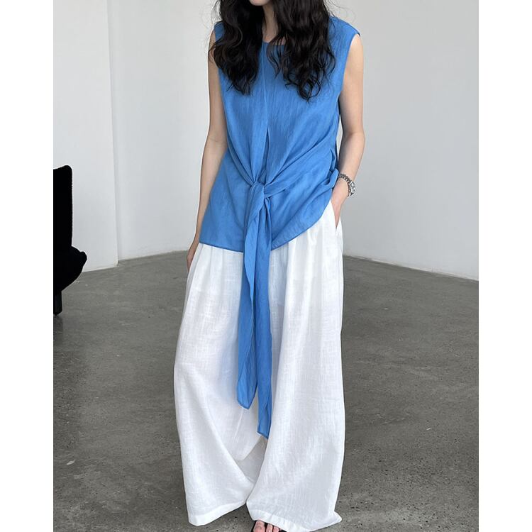 Wrap Waist Sleeveless Peplum Blouse French Chic 2Colors 2604047