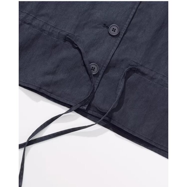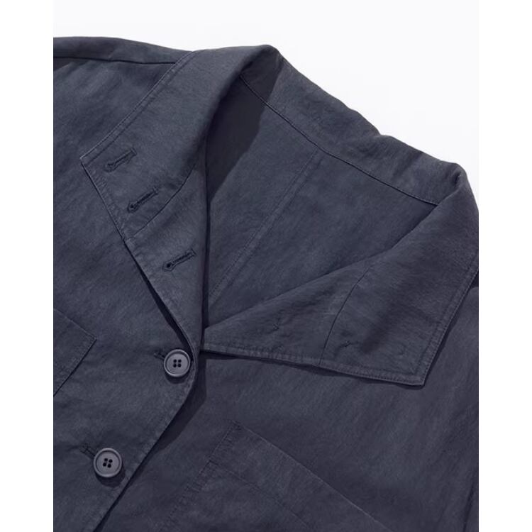 シャツの軽快さとジャケットライクな存在感を兼ね備えた、クロップド丈のシャツアウターです。すっきりと開いたスキッパーカラーが首元に抜け感を与え、シンプルながら洗練された印象に仕上げています。