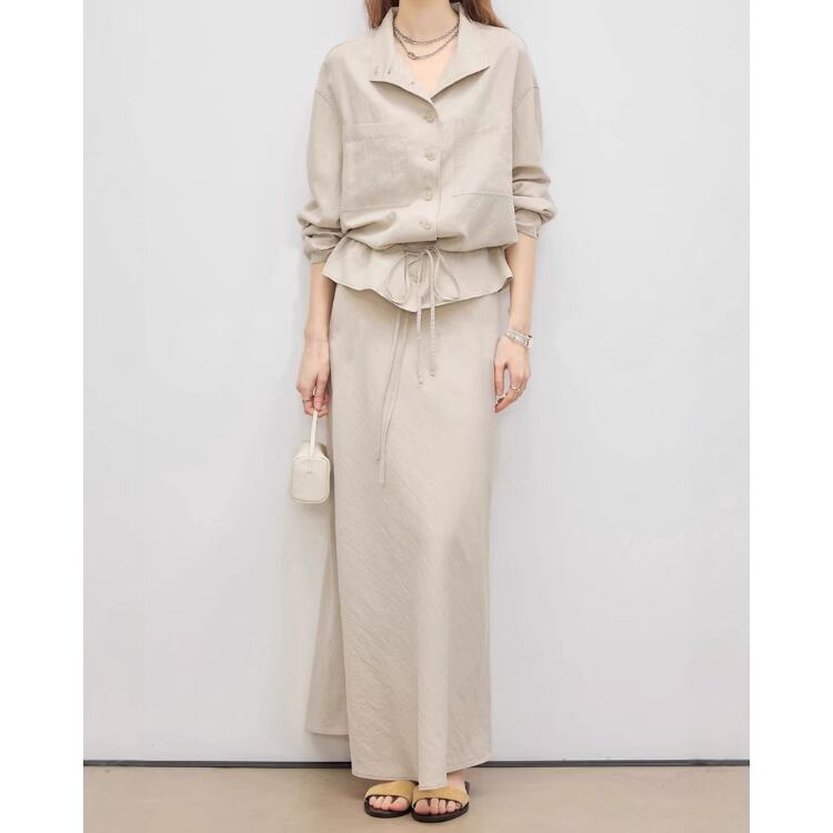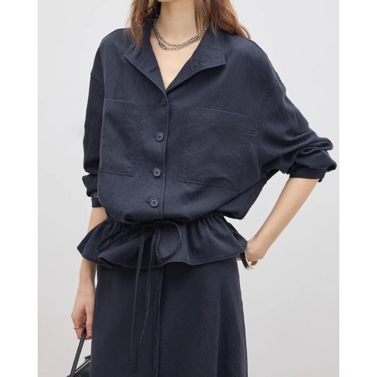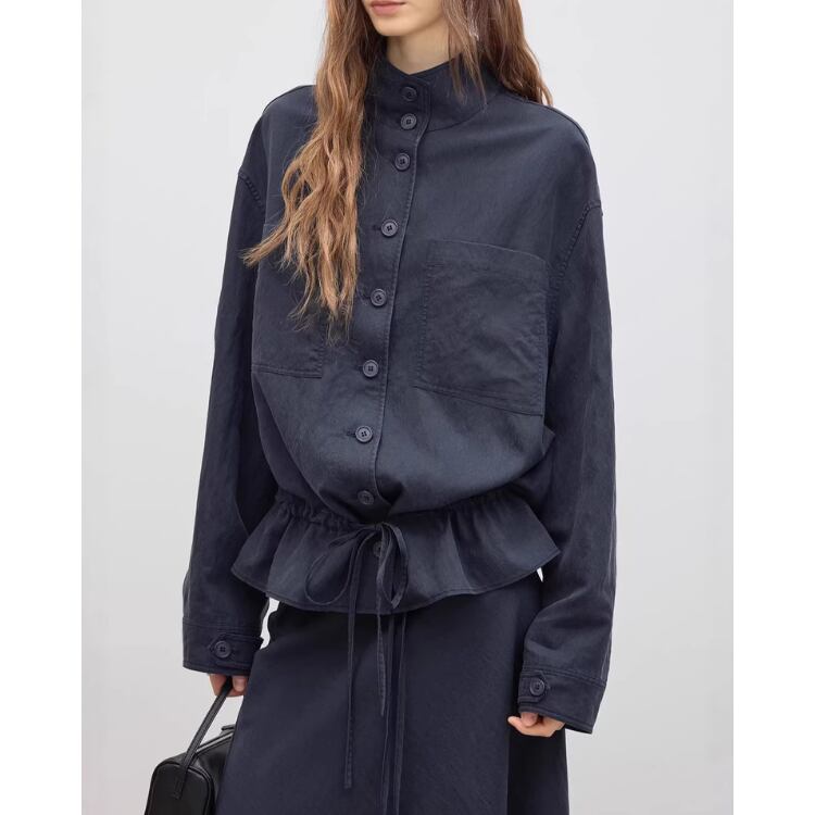 Drawstring Waist Cropped Shirt Jacket 2Colors 2604050