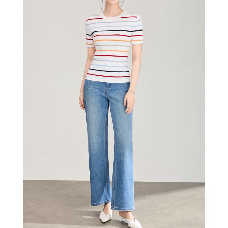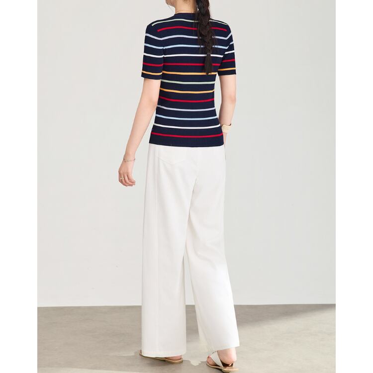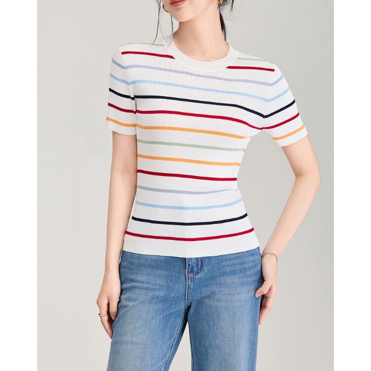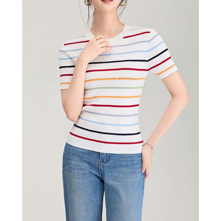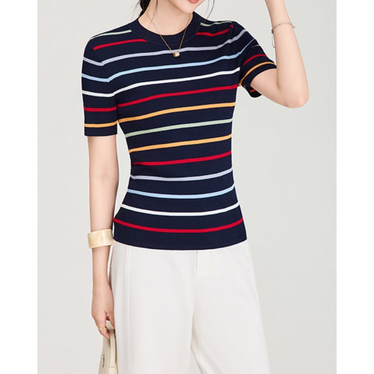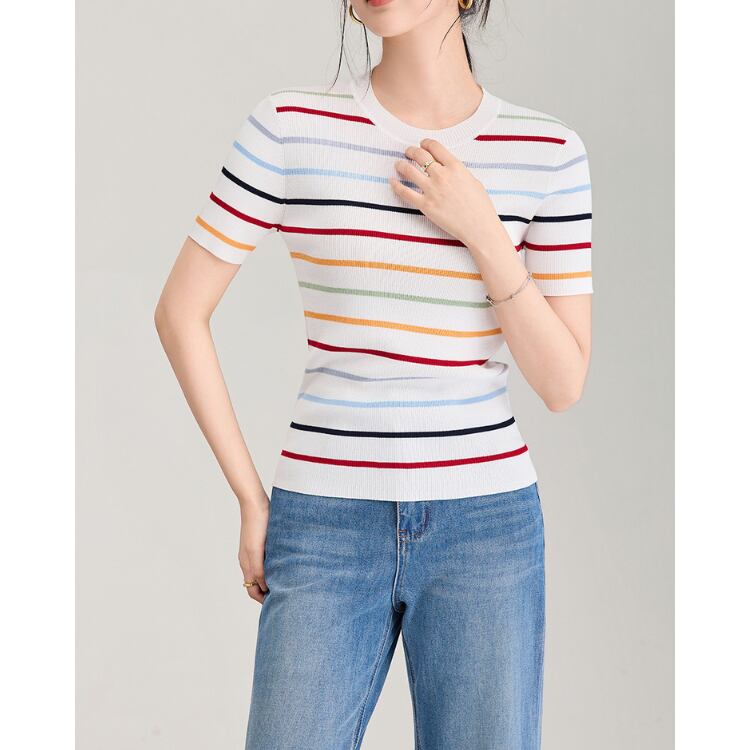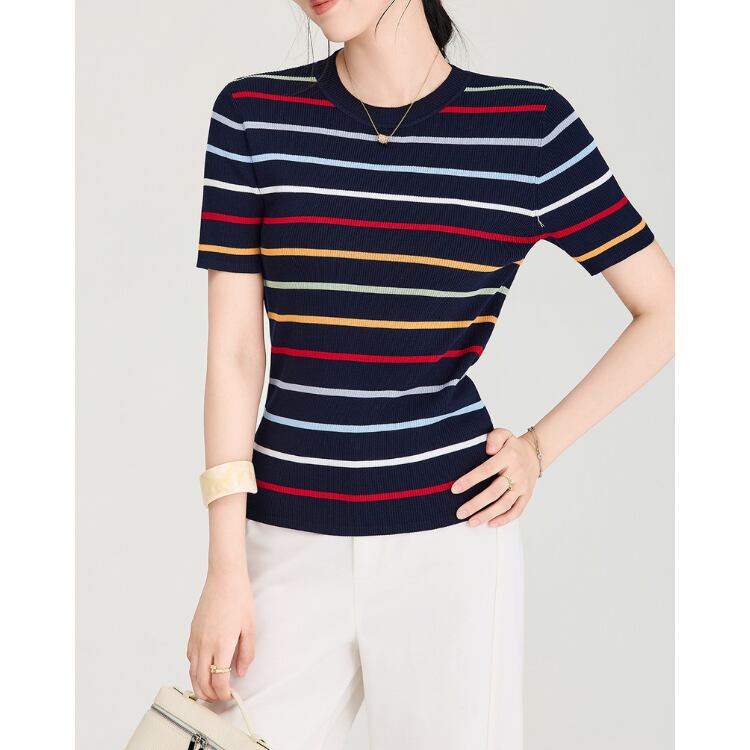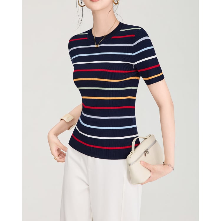 Silk Blend Stripe Knit Tee 2Colors 2604065