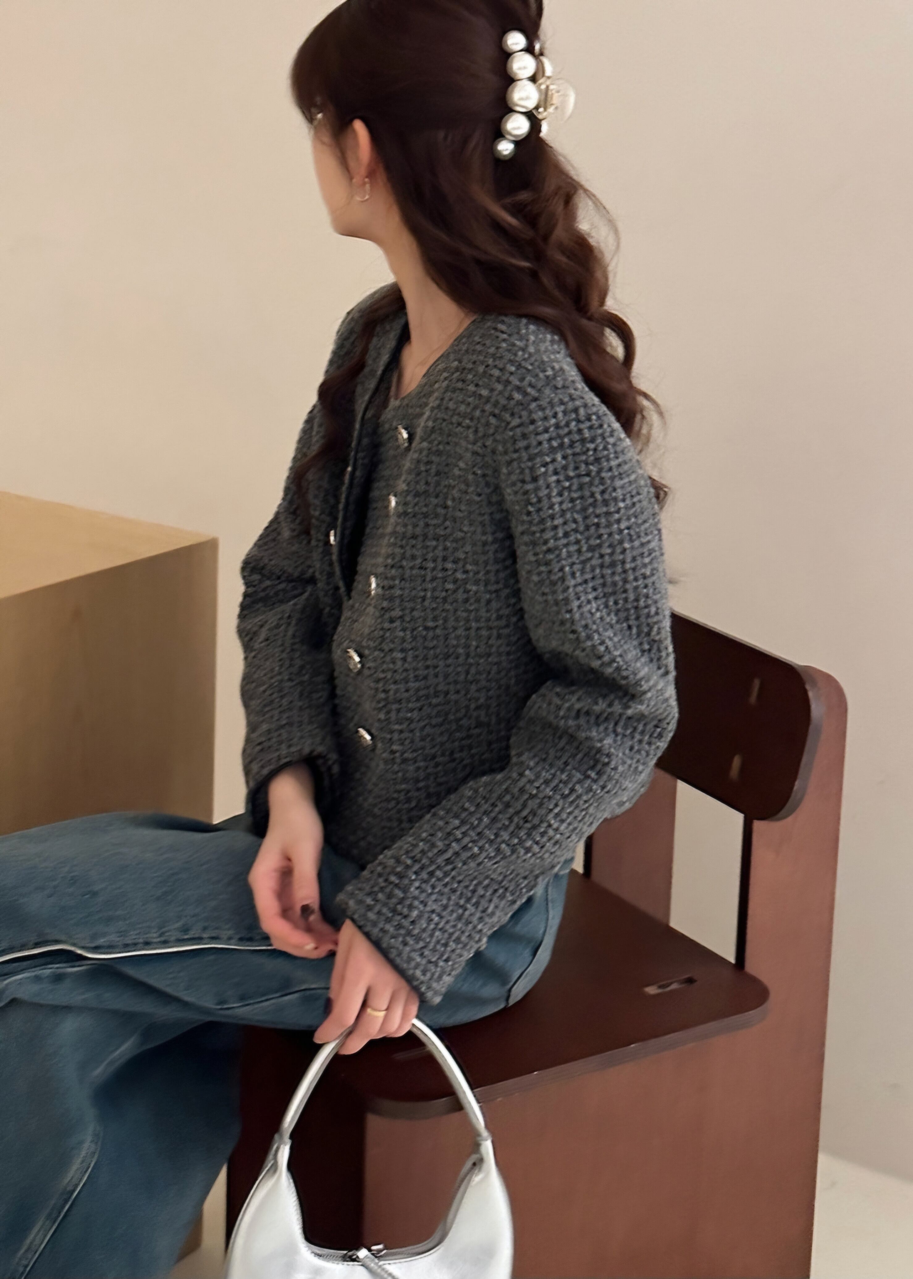 上品でクラシックなデザインが特徴です。40%の羊毛と60%のポリエステルを使用し、肌触りが良く、長時間の着用でも快適に過ごせます。ダブルボタンのディテールが、シンプルながらも洗練された印象を与え、どんなシーンにも対応可能です。カジュアルなデニムからフォーマルなスカートまで、幅広いコーディネートにマッチします。