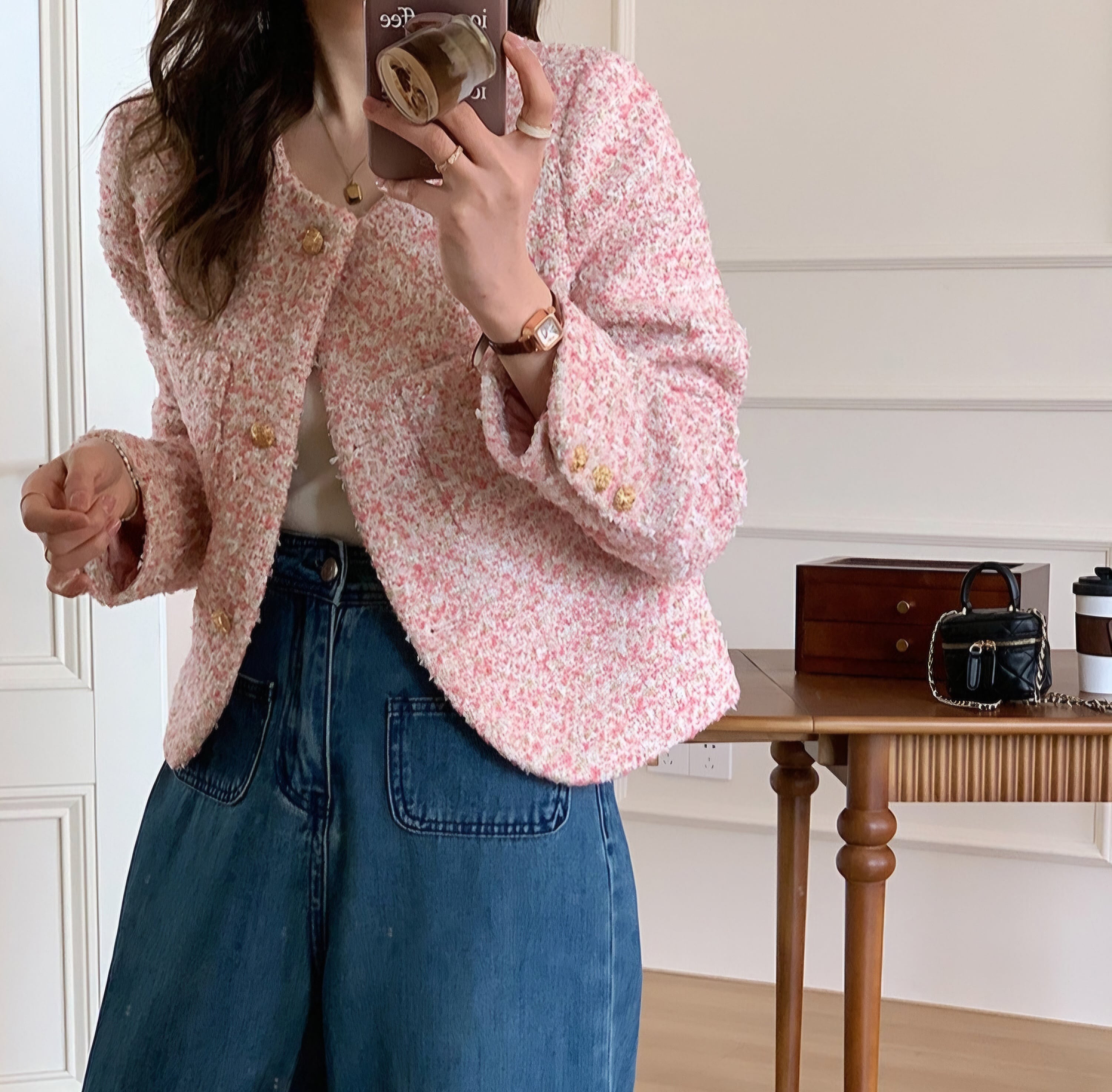 Pink Wool Tweed Jacket Top 30014